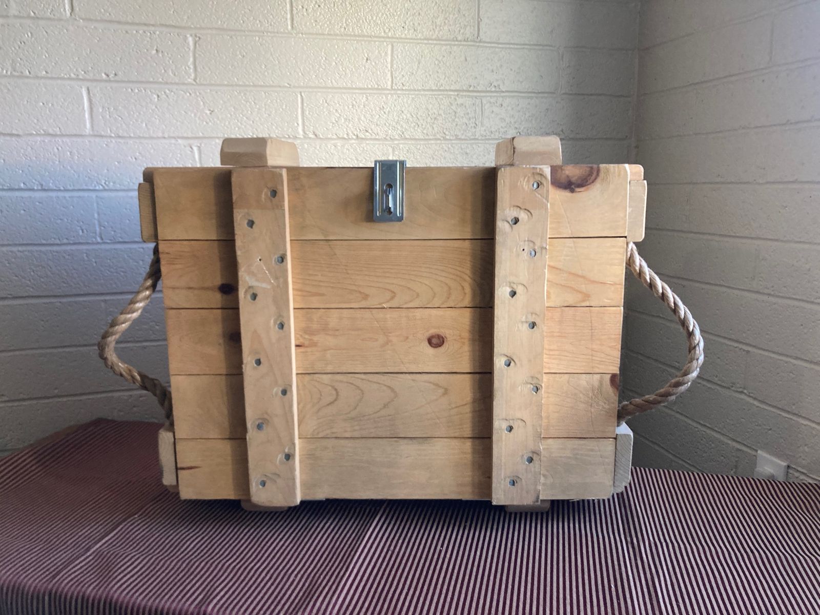 VenmoCool Heavy duty wood crate! Use for tack or to upcycle and use as a desk for home or tack room. Measures 26 x 21 x 10 closed Branded Lid when open measures 23x17.5