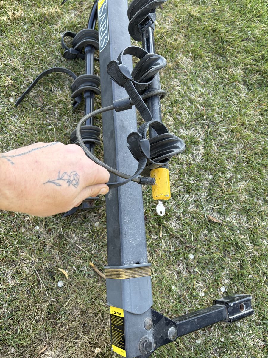 CashAppHeavy Duty Saris bike rack for up to 4 bikes. With lock and hitch. No issues and is in perfect working condition, I bought the this for over $500 originally so this price is a steal. I’m clearing out my storage unit and so this has to go today. Let me know if you have any questions.