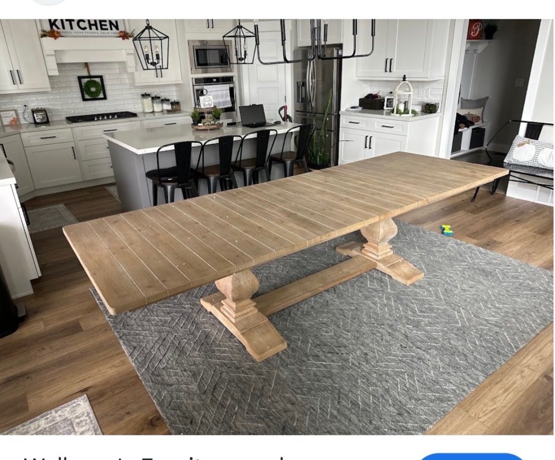 VenmoLarge Dining Table 84”x42” comes with 2 leaves that expand table to 120”. Benches included.