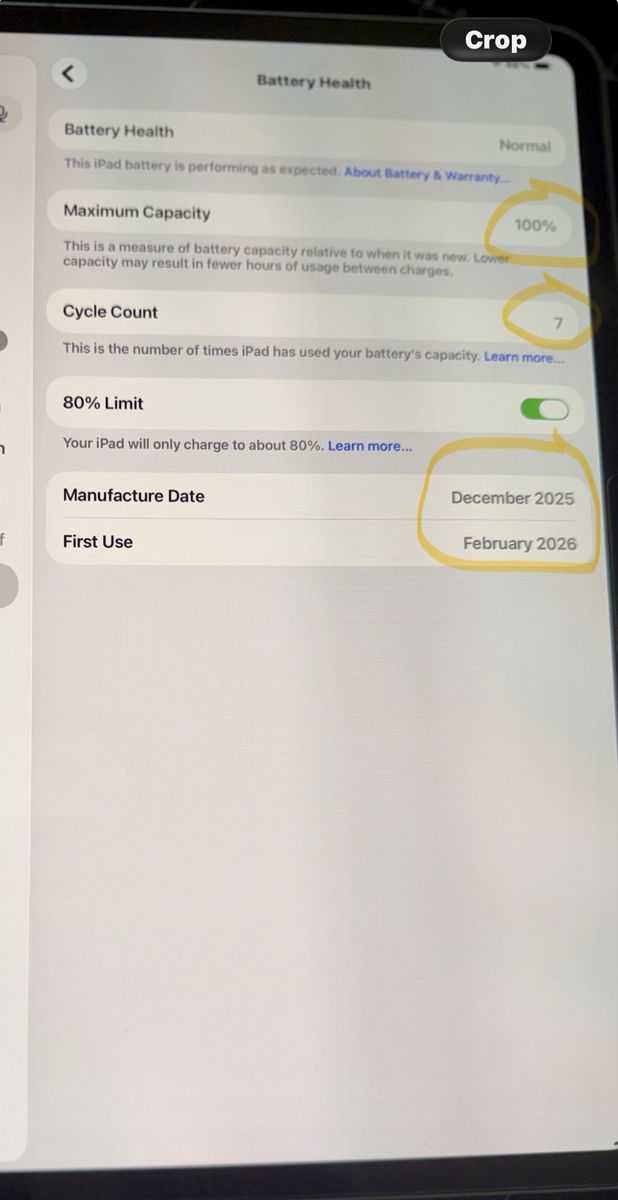 • 100% battery health (only 7 cycles)