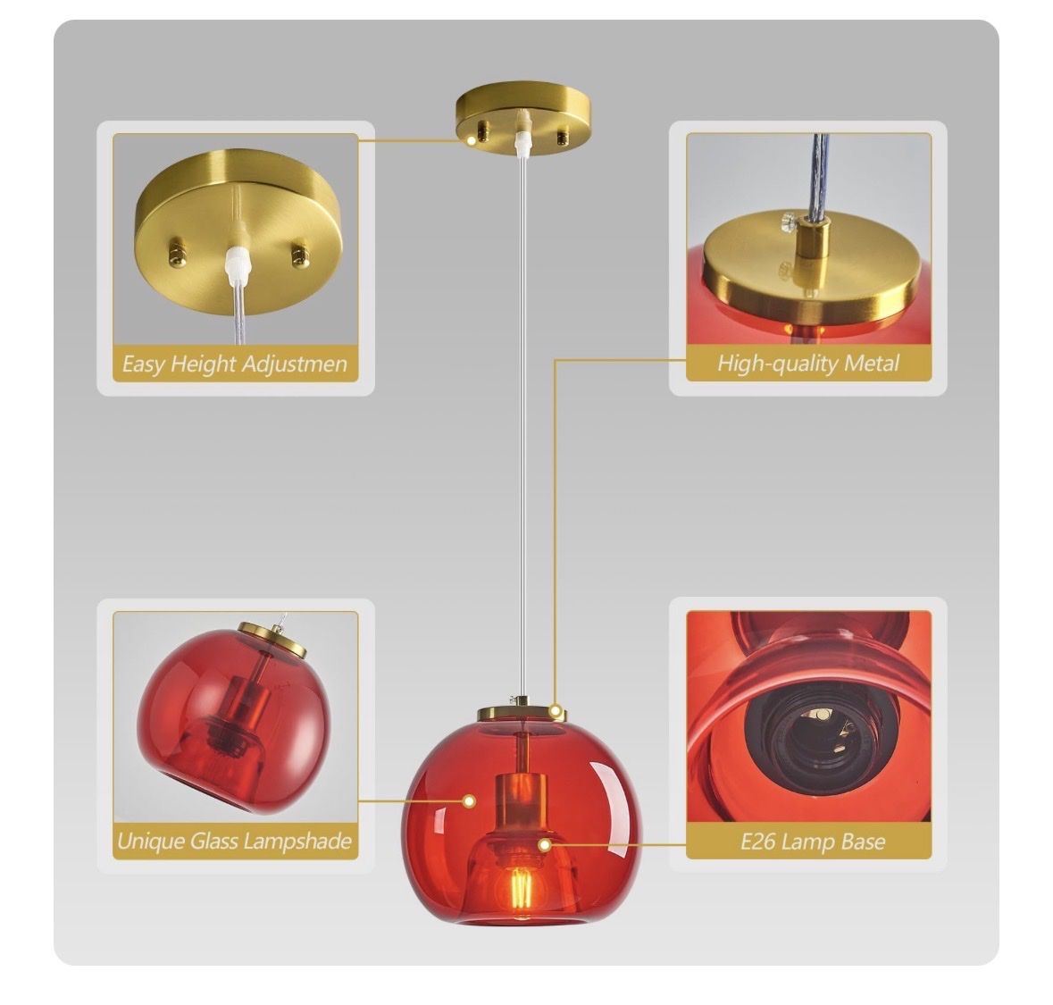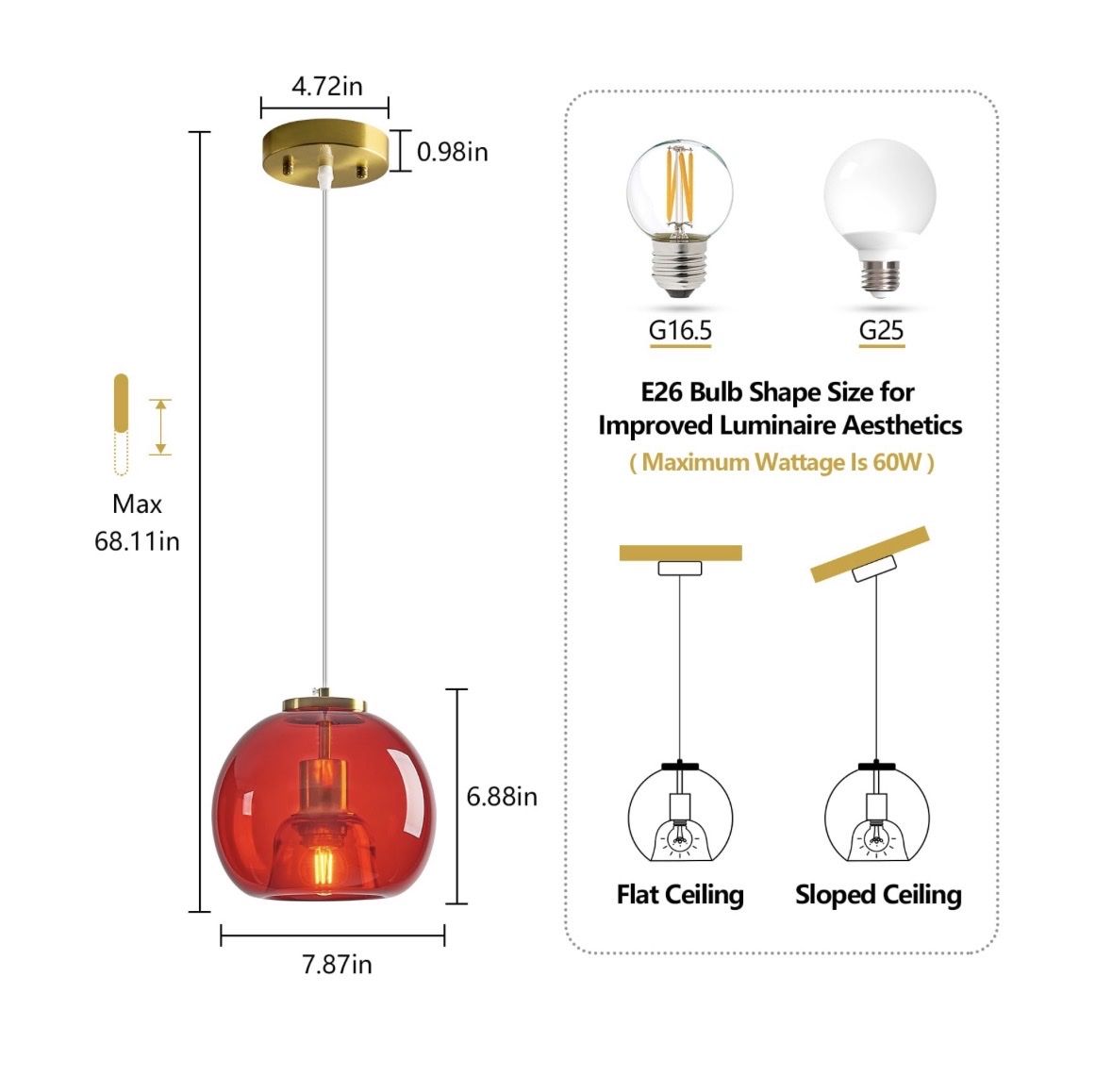 Details: Home Lighting 60-Watt, 1-Light 7.87” Red Glass Globe Pendant Lights