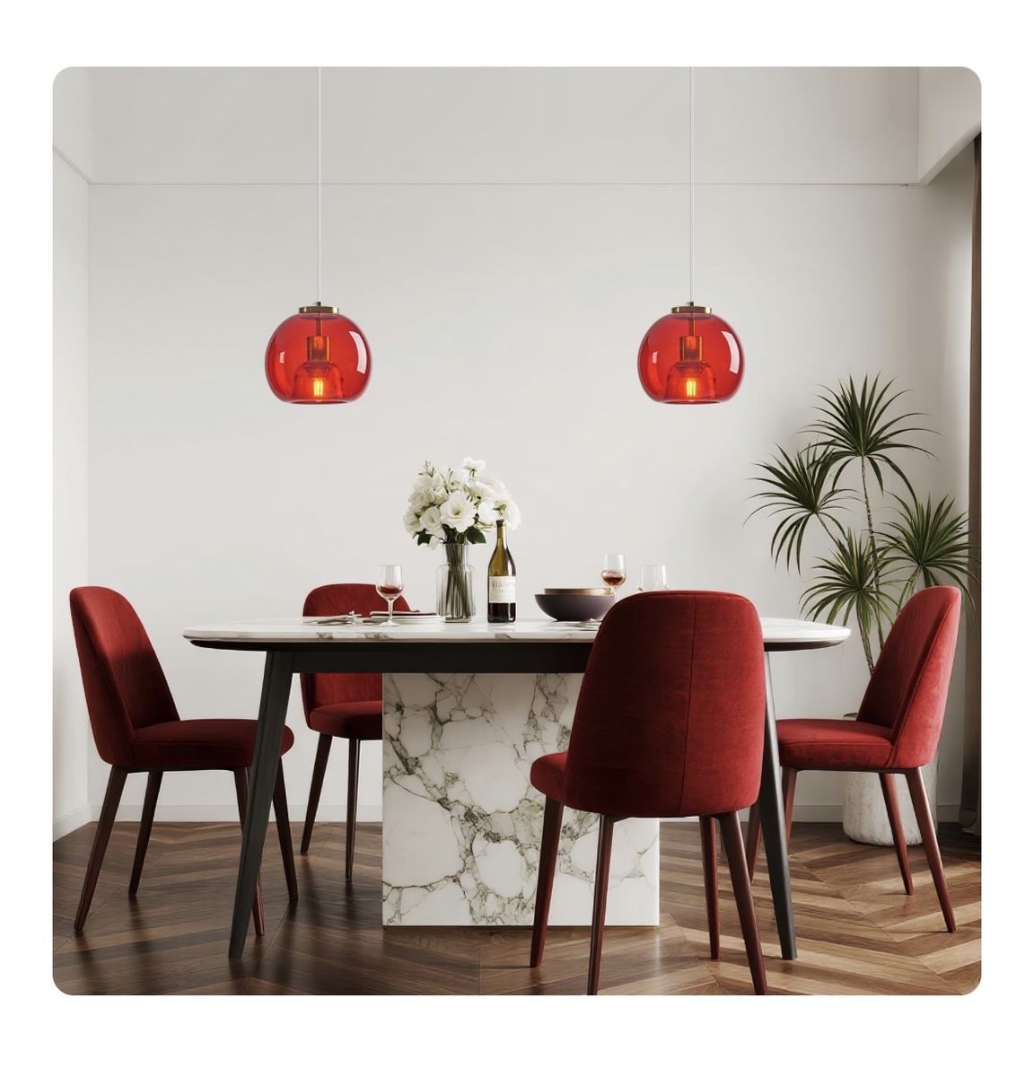 Red glass pendant lights-bold, modern, and guaranteed to make a statement.