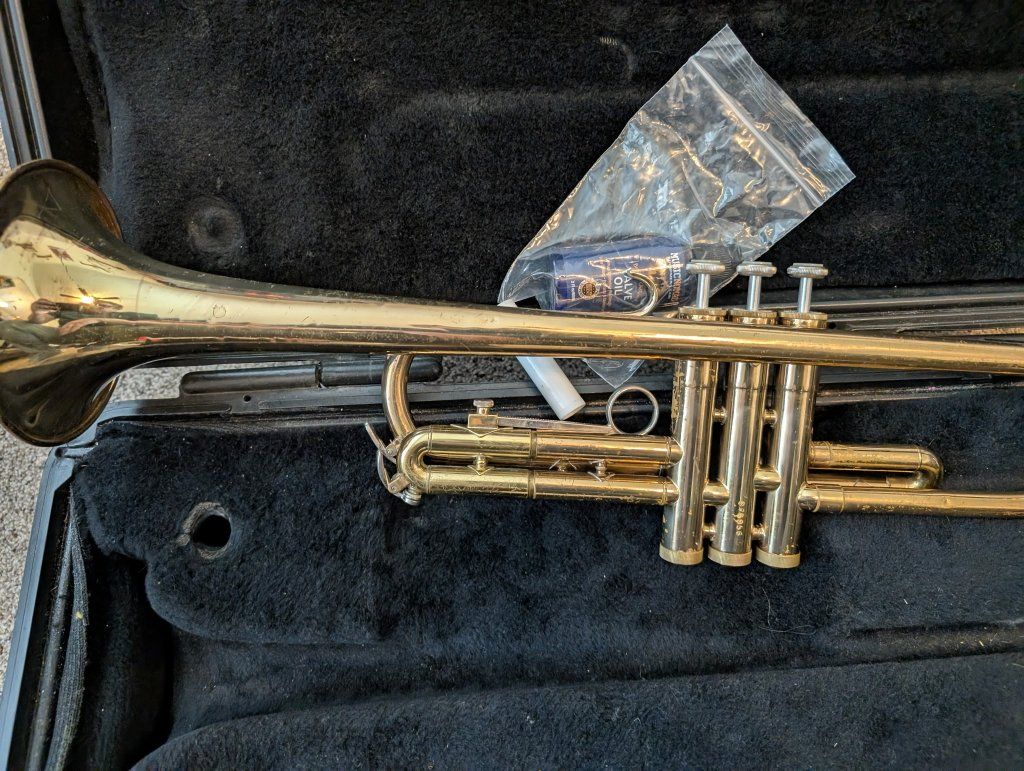 Just serviced and cleaned. In great working order and no repairs needed. Includes a sanitized mouthpiece and starting materials. I'm a musician and technician and guarantee it is ready to go or you can exchange it. All slides and valves move freely. No dents, a couple dings. If your band teacher doesn't approve you can exchange it. Feel free to call or text if you have questions.