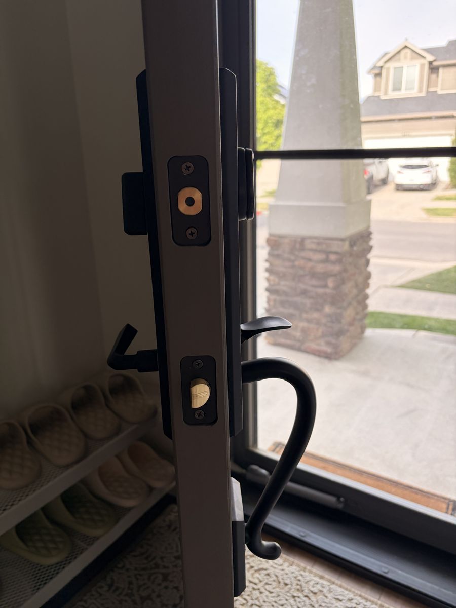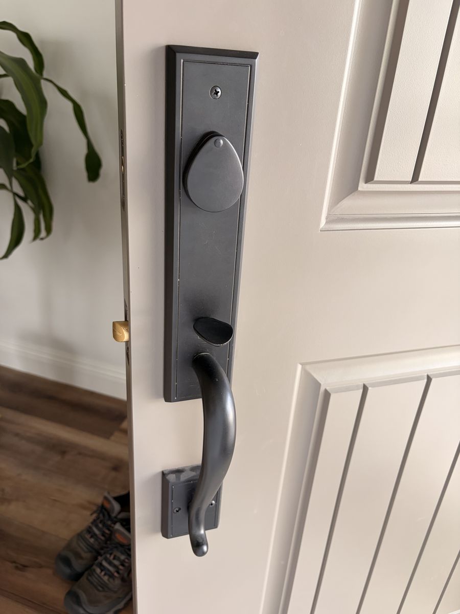 ZelleFront door handle set with lock. All hardwares included with two original keys. Almost brand new just swap it out for a smart lock.