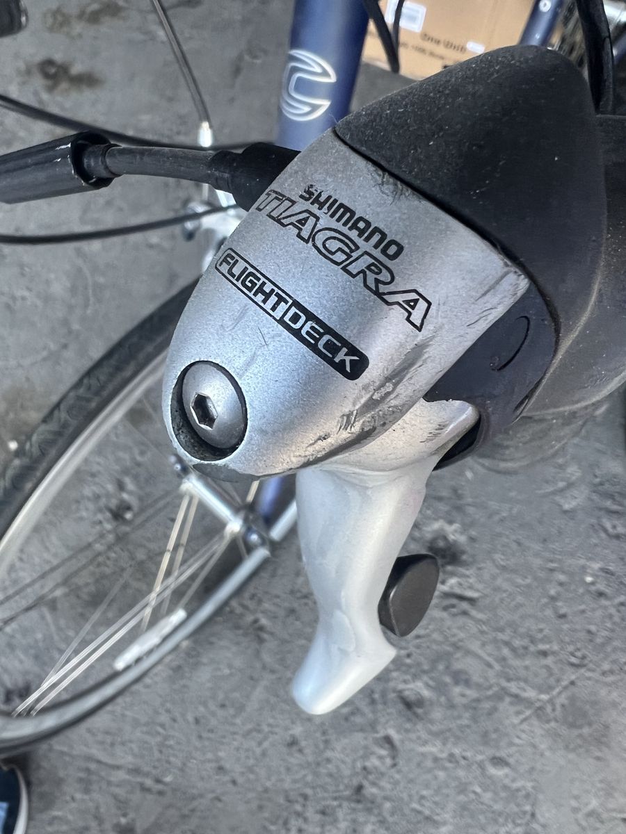 Frame: Cannondale 6061 T6 aluminum, 56cm (fits ~5'9"–5'11"), matte navy Fork: Cannondale Ultra Slice Si Drivetrain: Shimano 9-speed Saddle: WTB Rocket Pedals: Crankbrothers platform + clip in (Double Shot) Wheels: 700c Recently serviced: new gear cables and housings throughout and new tires.