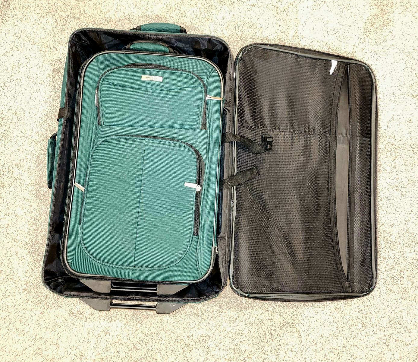 One duffle roller case with extendable handle and all suitcases nest together for easy storage