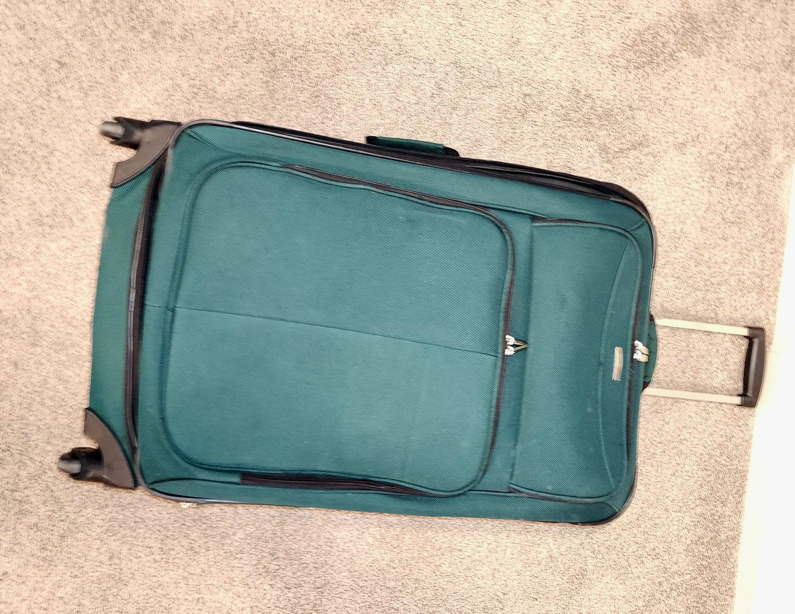 There are (3) classic suitcases all with rollers with extendable handles.ur family