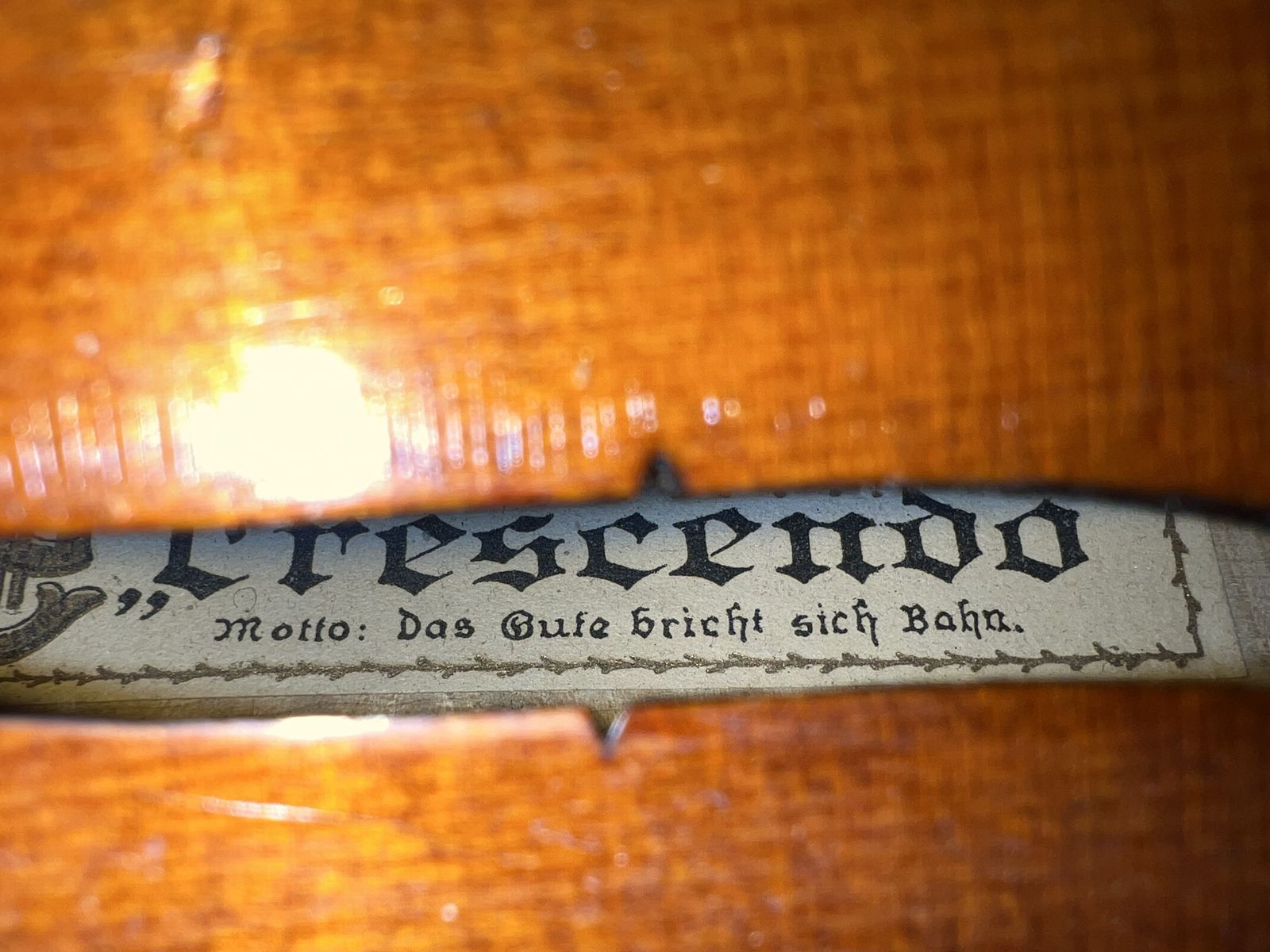 Offered for sale is a beautiful antique Shutz “Crescendo” violin estimated to date between 1880–1890, crafted in Germany. This instrument carries both historical significance and strong tonal potential, making it ideal for collectors, musicians, or investors in fine instruments.