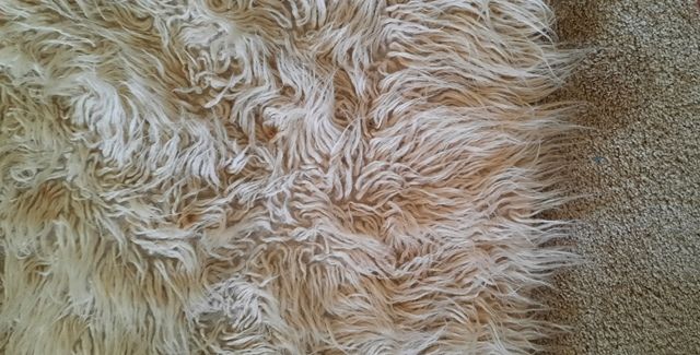 • Natural Materials: These rugs were made from 100% unspun hand sheared sheep’s wool. There were no synthetic dyes or backings. The lanolin remained in the wool, making the rugs naturally soil-resistant and surprisingly heavy.