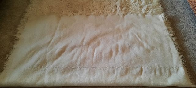 Hand made/woven sheep wool, size 104 in. by 68 in., has been in the family over 100 years.