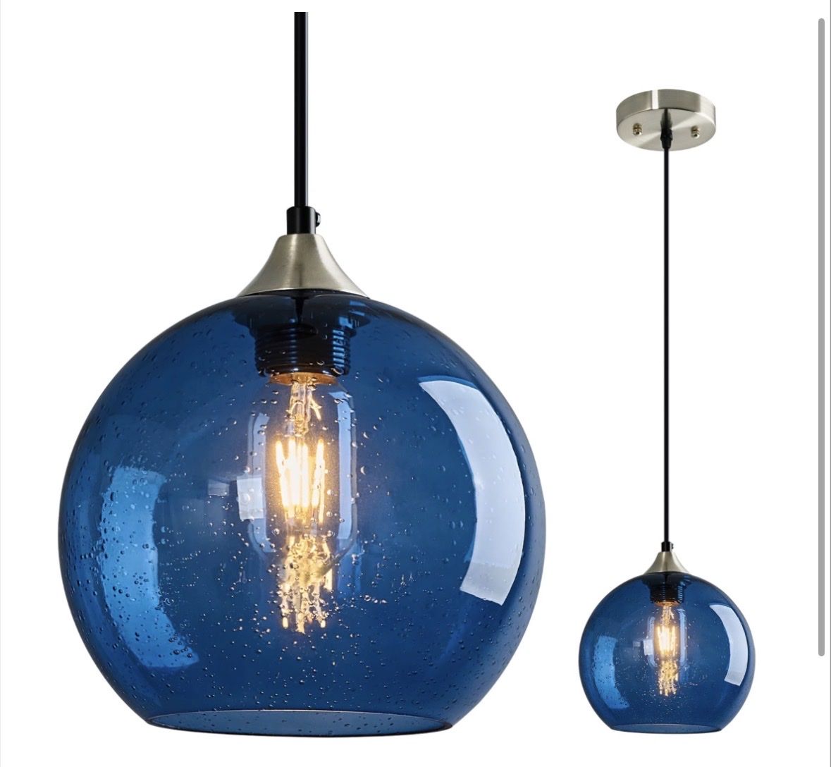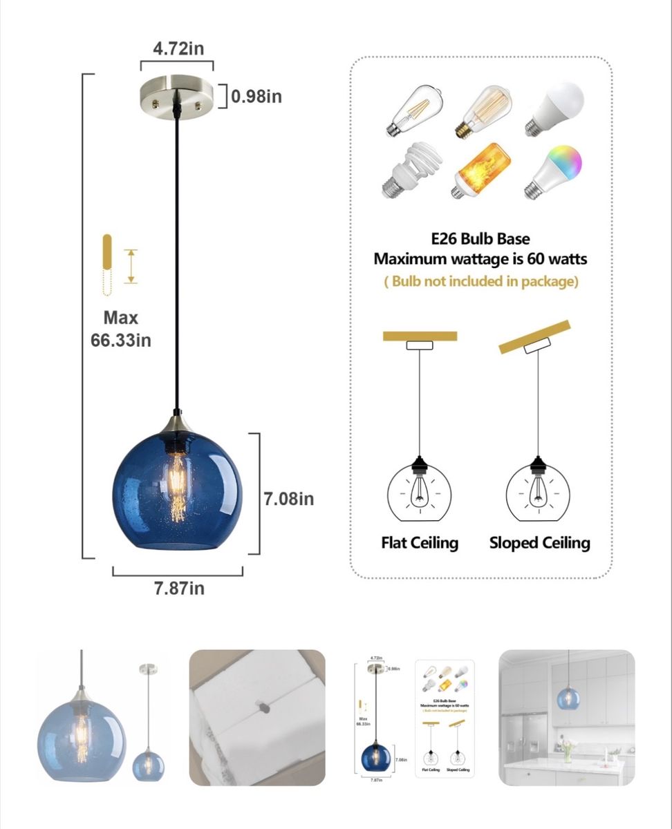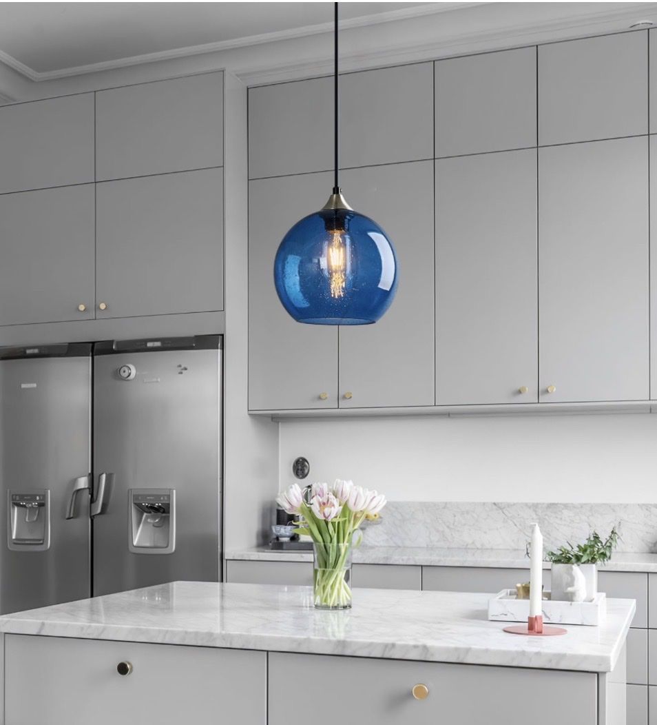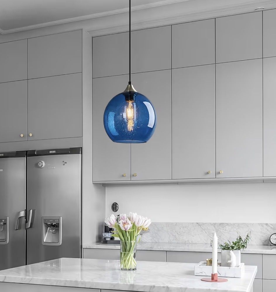 Brand new in box- Blue Glass Pendant Lights Kitchen Island Lighting Globe Pendant Light Fixtures Modern Pendant Lighting for Kitchen Island Bedroom Living Dining Room Light Fixture(7.87in, 1-Pack)