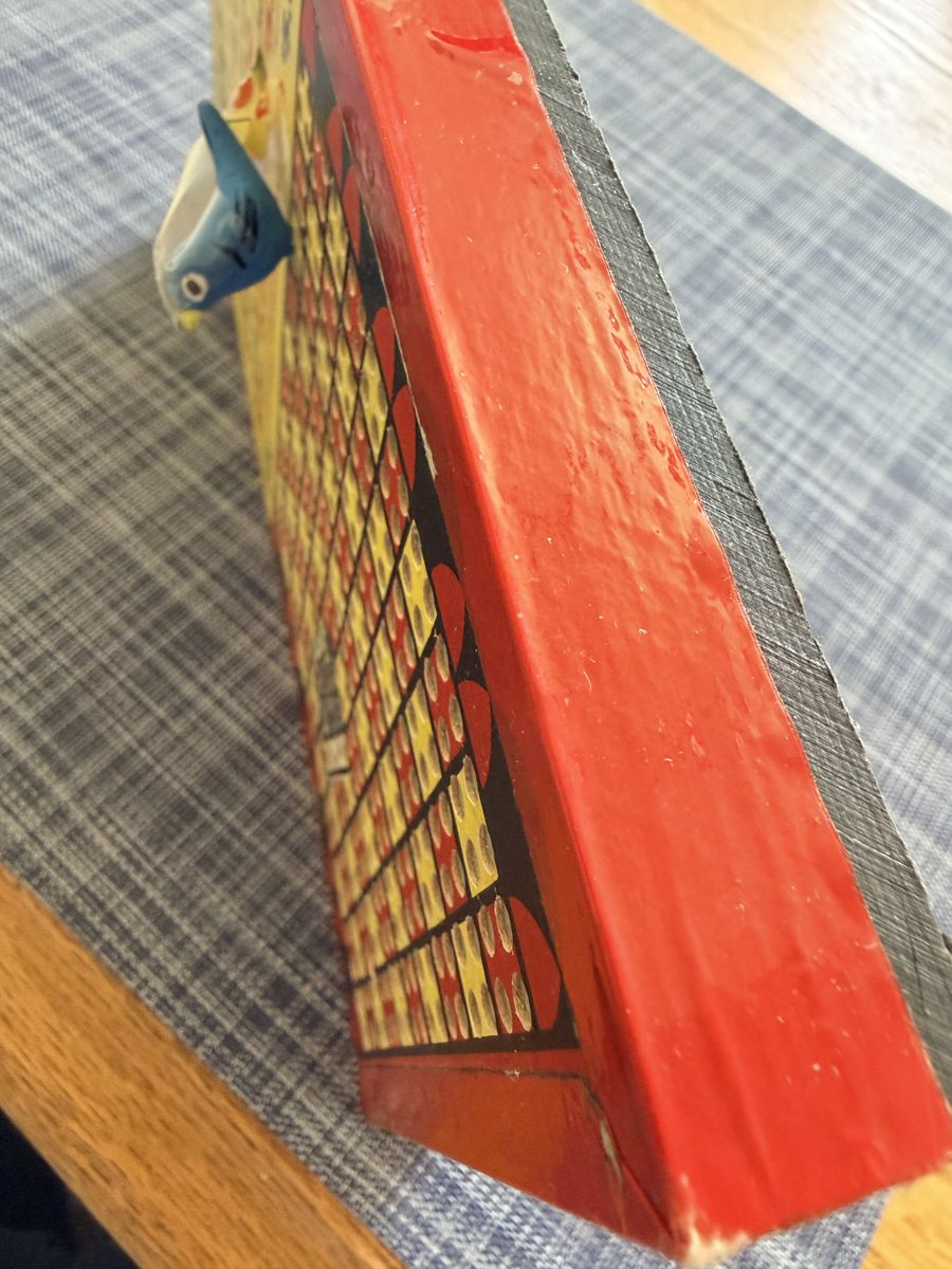 This item is a vintage "Lucky Fives" 25-cent “unpunched” punchboard. A form of gambling in taverns, golf courses, drug stores and general stores during the mid-20th century. Players paid 25 cents to punch a hole to retrieve a small, rolled-up slip of paper. If the number on the slip matched one of the winning numbers listed at the top of the board, the player won a cash prize typically ranging from $5.00 to $15.00. These boards were also called trade stimulators used to encourage customers to spend more time and money in establishment.