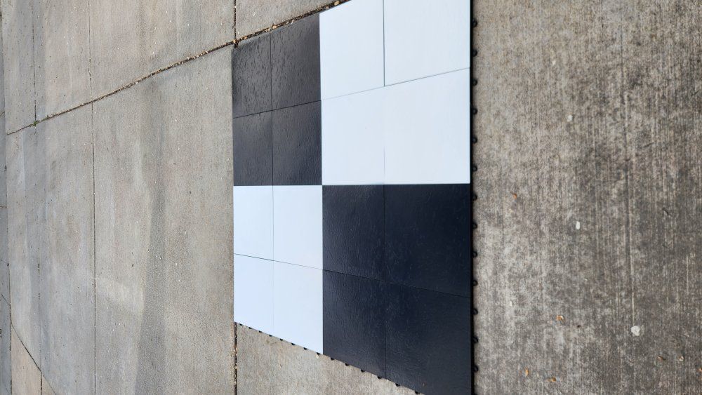 Since each tile is one foot, you can do a number of different patterns and sizes (as seen in the photos).