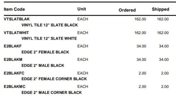 162 square feet of white tiles and 162 square feet of black tiles, or in other words, an 18 ft × 18 ft dance floor (along with the edges to the dance floor, as seen in some of the photos). I screenshot the invoice to show everything included.