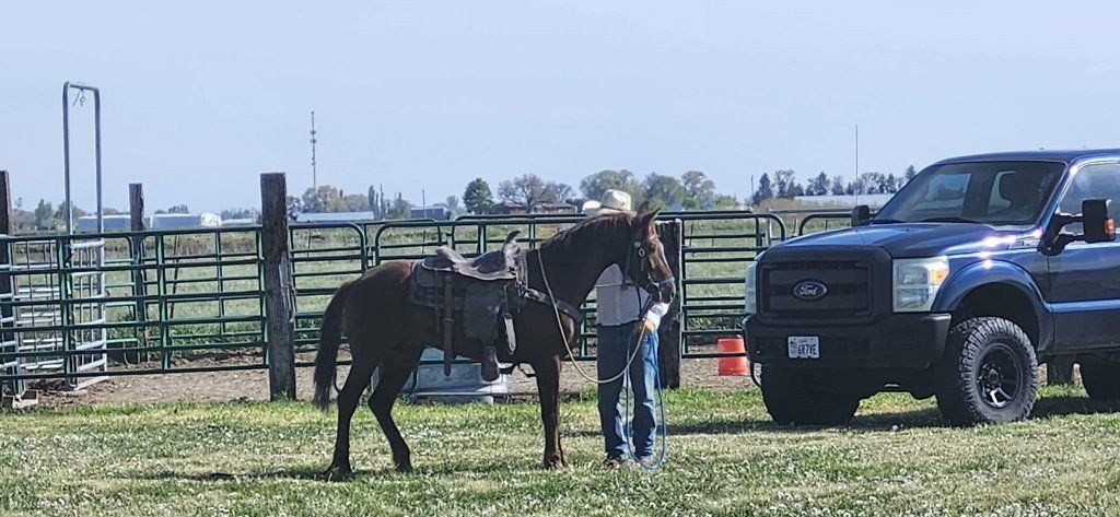 15 Hands DOB- 1/1/22 ( He is Chipped) Shot records, and boosters with vet Inspection Gelding date: 5/24/23 He leads, lunges, drops his head with a tap, ties, loads, tacs, grooms, and ok with tractors, flags, atv"s ect.. Strong Athletic build - powerful well defined neck and loin, and he's still growing.. Easy to handle, and he tries hard Very Sound, and he'll definitely be a barn favorite..