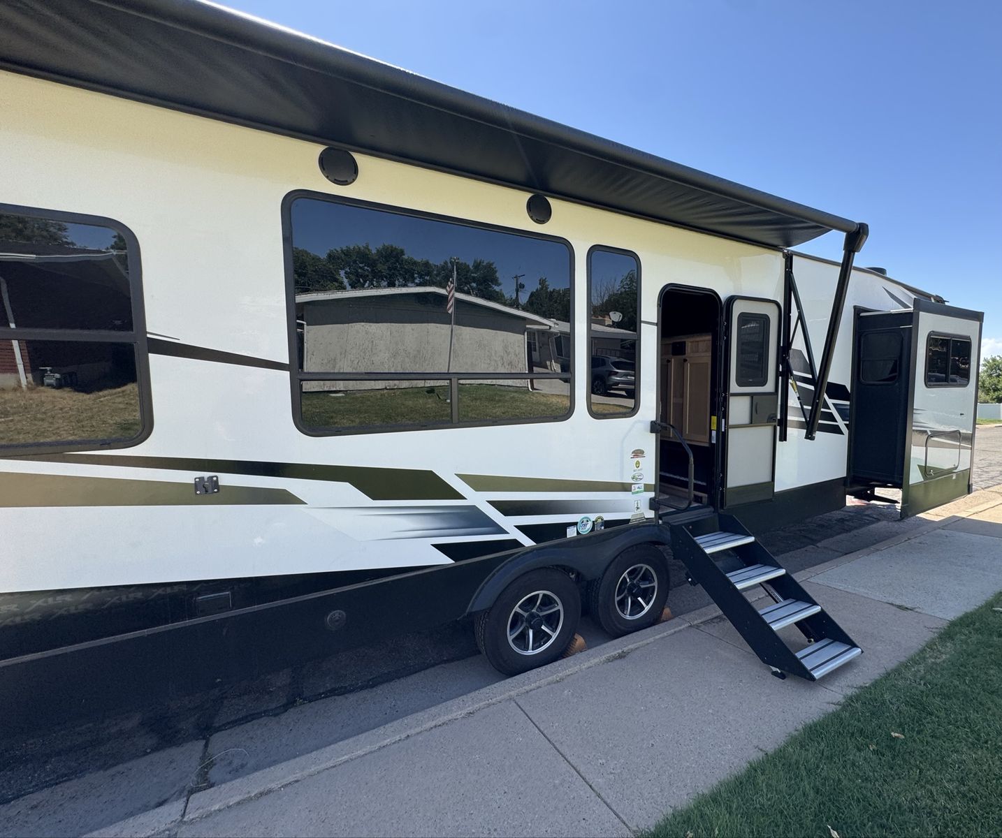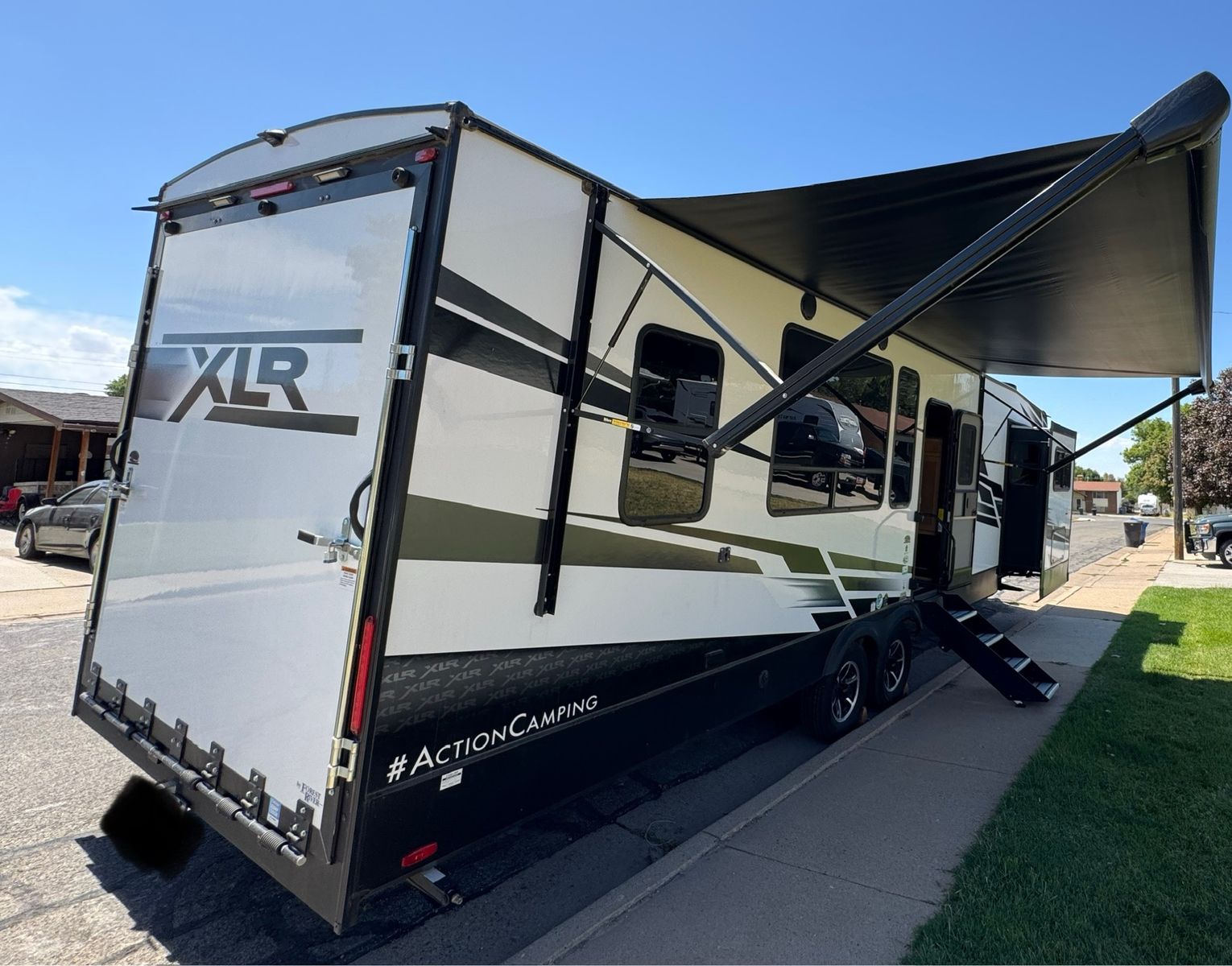 2023 Forest River XLR 3517 Toy Hauler. Like new, ONLY USED TWICE. This trailer has an on board 5500 generator, fuel station with 30 gallon fuel tank and onboard Solar. 1500 watt inverter. Fresh water tank is 106 gallons. 10 gallon water heater. TPMS Monitor. Queen bedroom slide with central vacuum system located in bedroom. Mount for tv on exterior of trailer. Dual a/c. Rear patio. Electric dinette and queen beds that come off ceiling in rear. Electric fireplace. Dual 6 volt batteries. Selling due to loss of loved one and too big for one person. $40,000