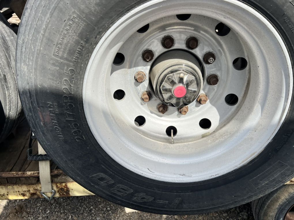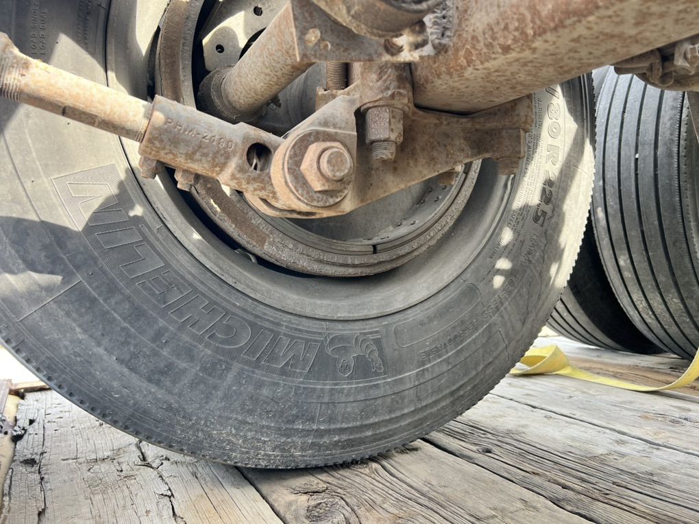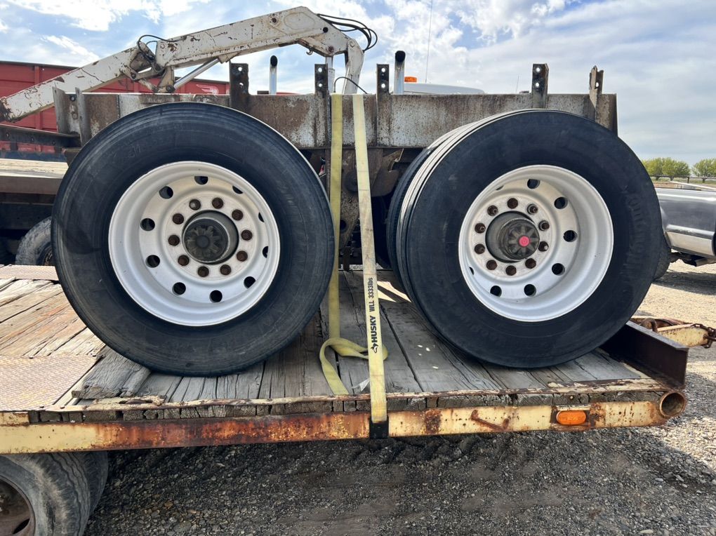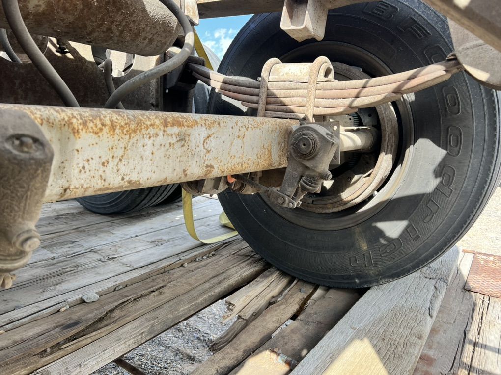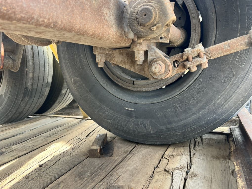 Fruehauf square axles good brakes and suspension 22.5 aluminum bud wheels have extra oil cap brand new. Frame is bent on subframe, tires not included. $2,500 or best offer