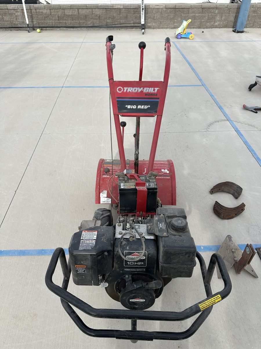 VenmoWorks Great! Just finished tilling up my garden, just too big for my smaller garden. This is bigger than the 8 Hp Troy built Horse most are familiar with. Has an electric start. Started in less than 15 seconds after putting new gas in it, after sitting since last spring. Comes with a furrow tool, a new set of tiller tines and snow or dirt plow. Five years ago we moved into a new house with a small garden, I don’t need this big tiller anymore for my small garden.