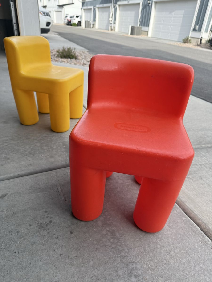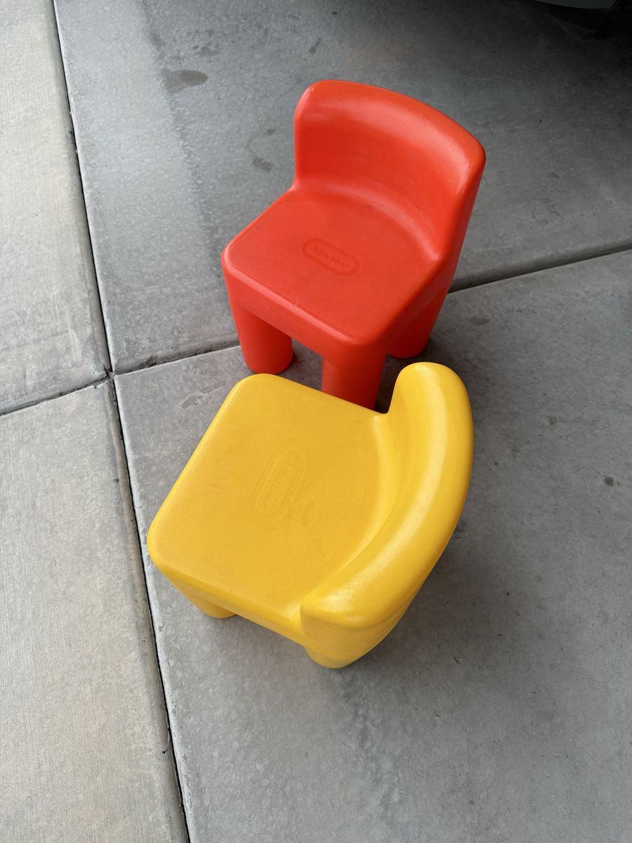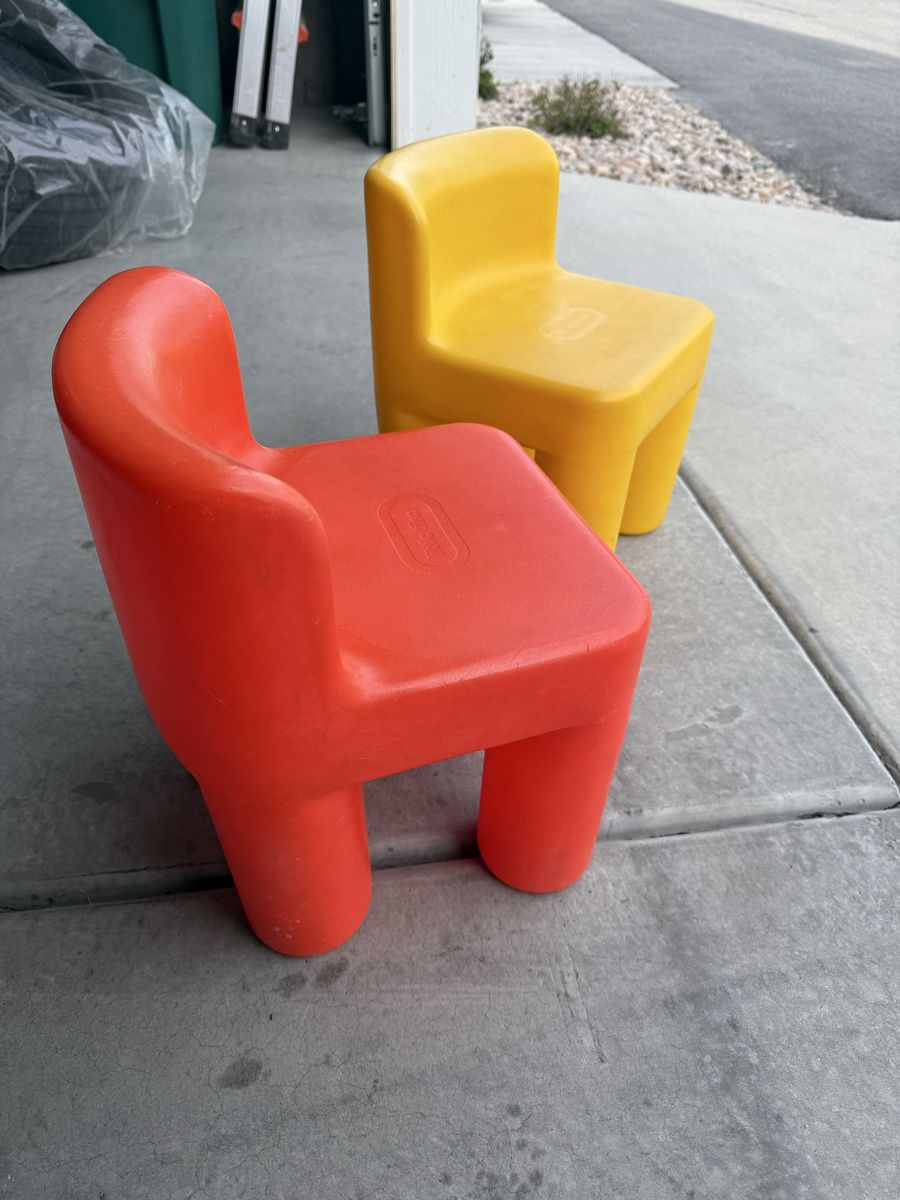 Fun colored orange and yellow Little Tikes chairs! Perfect for a playroom or outside in the yard! $45 obo!