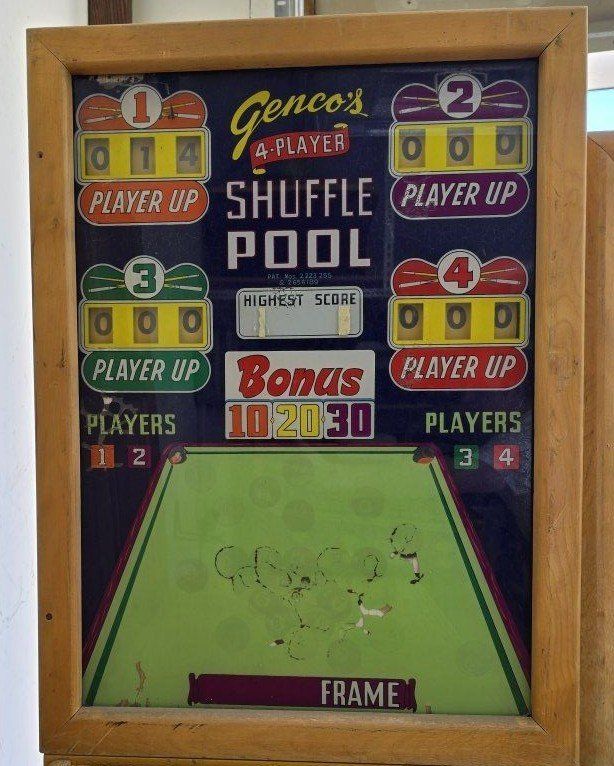 Genco’s 4 Player Shuffle Pool Vintage electro-mechanical arcade game. Rare collector piece from the 1950s.