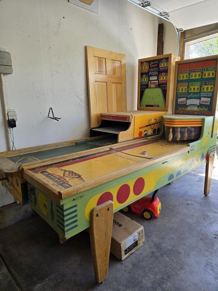 GooglePayRare 1950s Vintage Arcade Machines – Genco Shuffle Pool + Chicago Coin Bowler originally from the Lagoon Penny Arcade