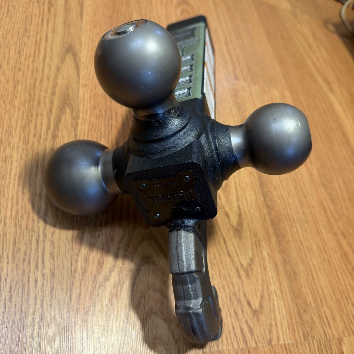 ApplePayHeavy-duty Reese Tactical tri-ball hitch with hook. Has 1-7/8-in ball (2000 lb towing), 2-in ball (6000 lb towing), and 2-5/16-in ball (10000 lb towing). Hook has 10000 lb recovery capacity. Fits 2-in receiver opening.