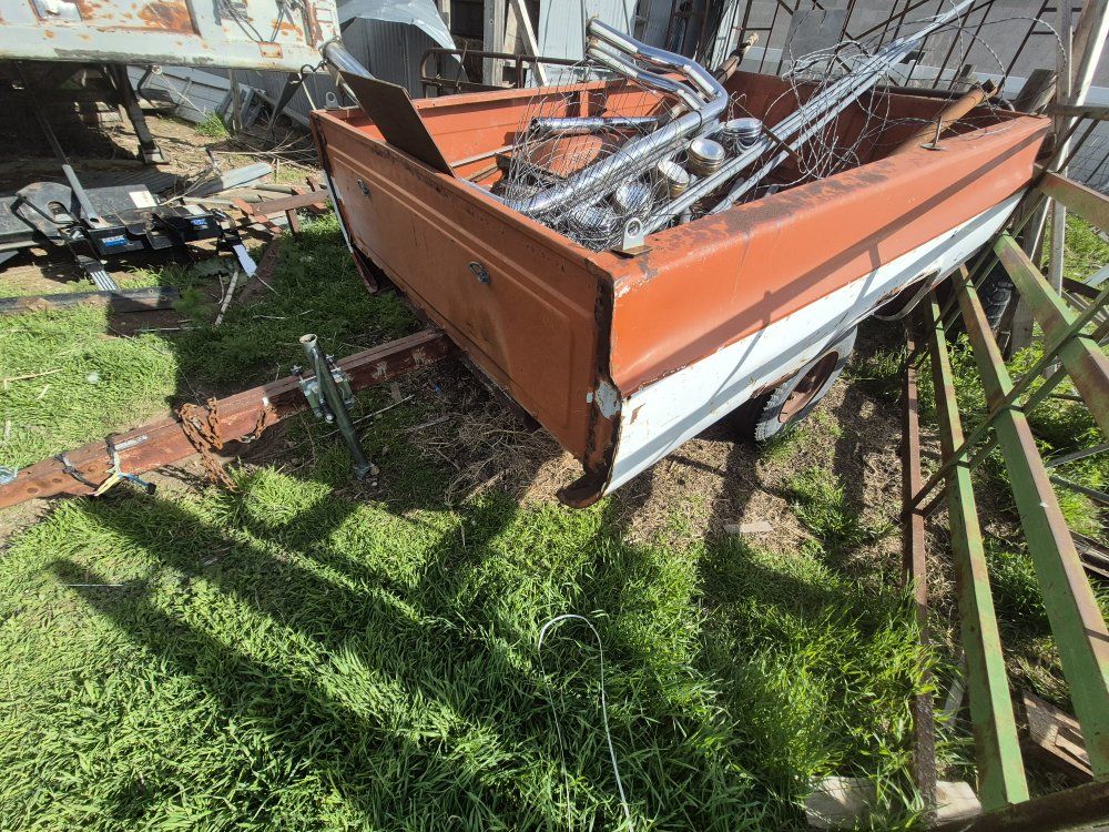utility trailer, used it for storing scrap. need to make room. has new tire also has a title.
