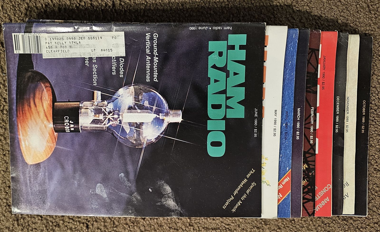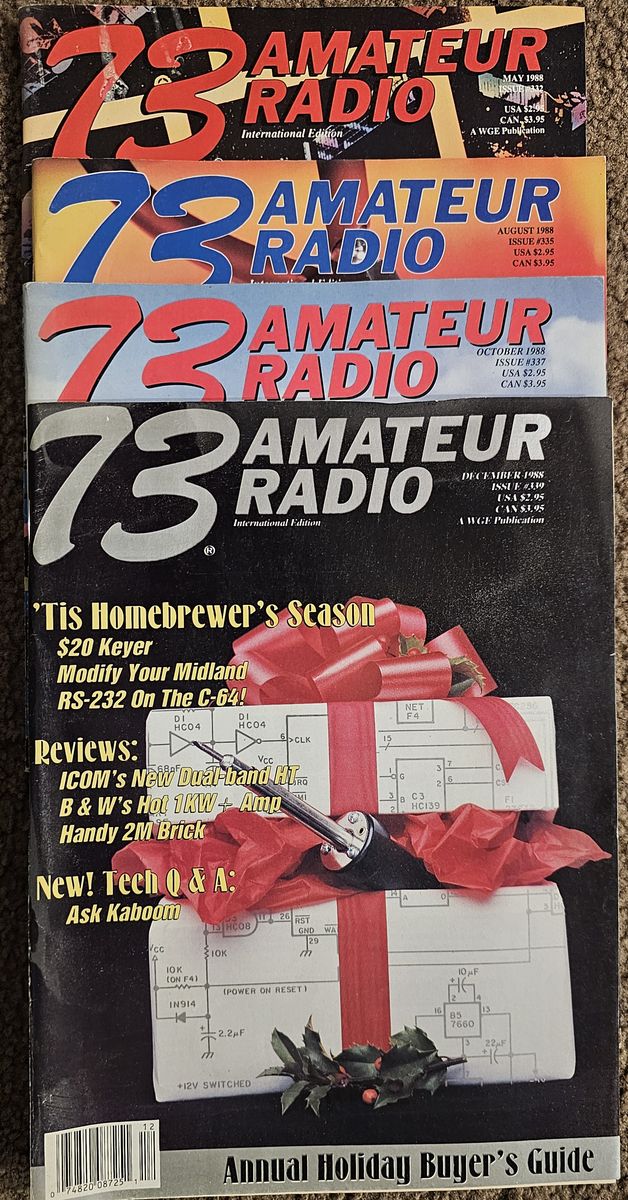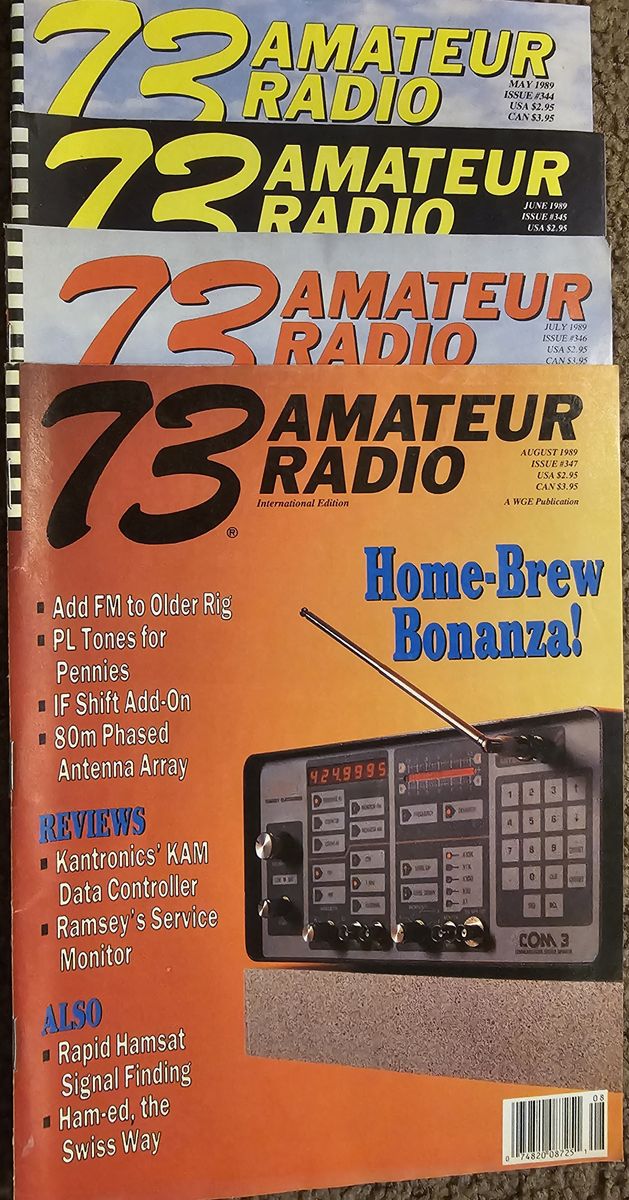 $Late 80s to early 90s issues. QST: April 1989 through November 1990, all issues; Ham Radio: October 1989 through June 1900, all issues; three issues of CQ from 1990; Various issues of 73 from 1988 through 1991.