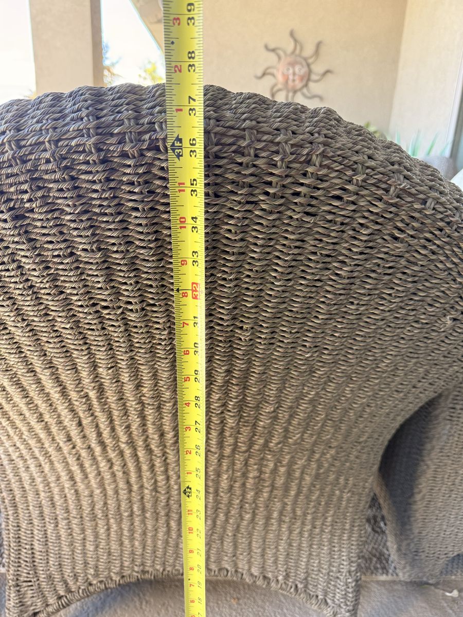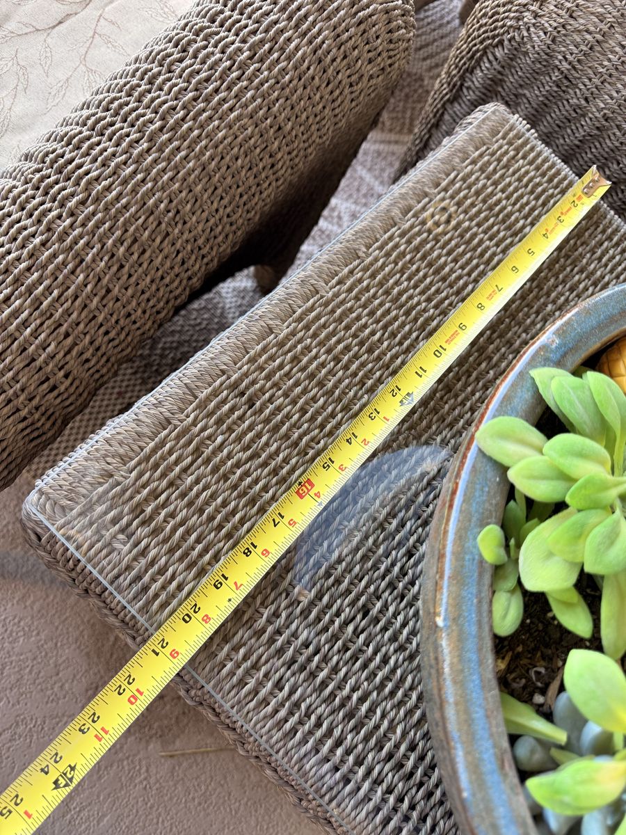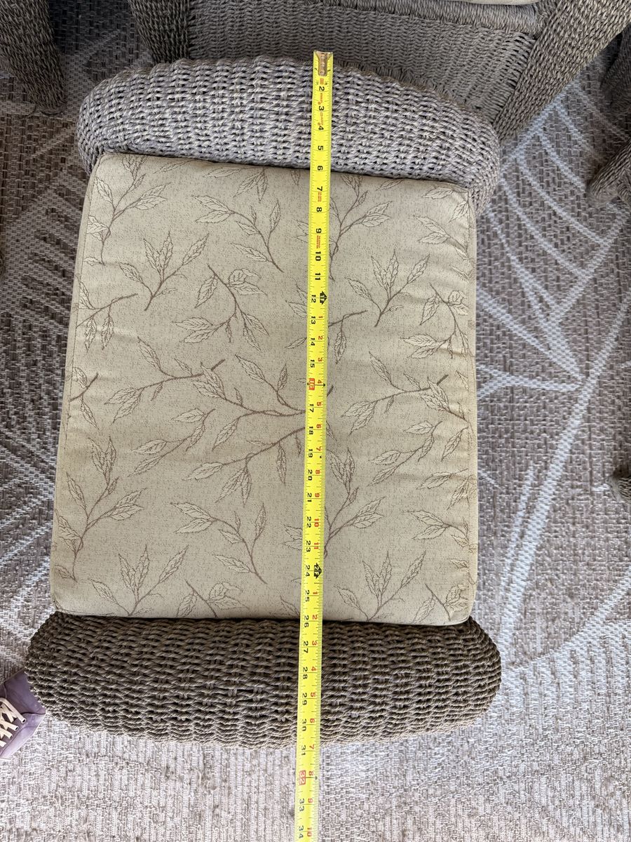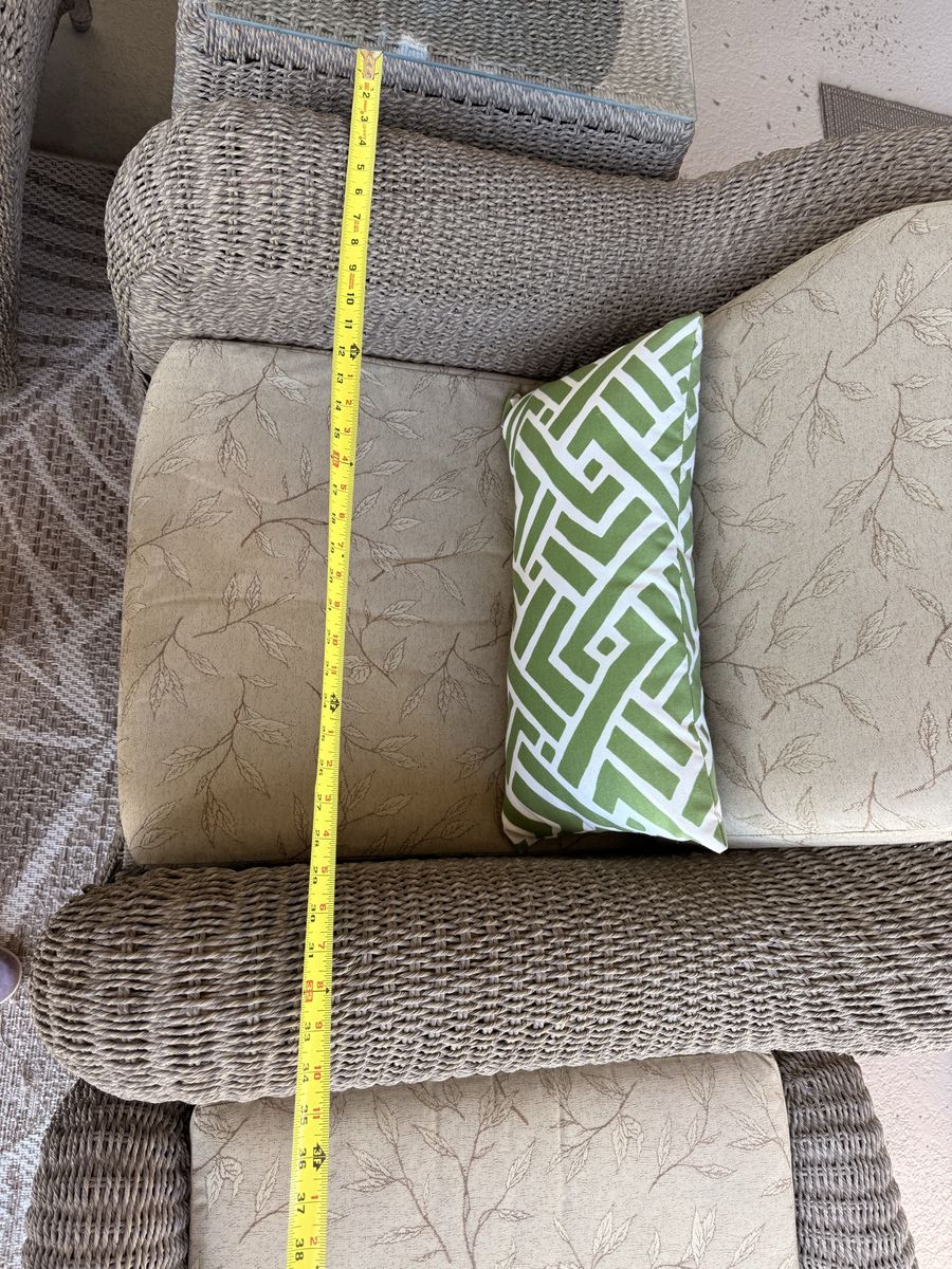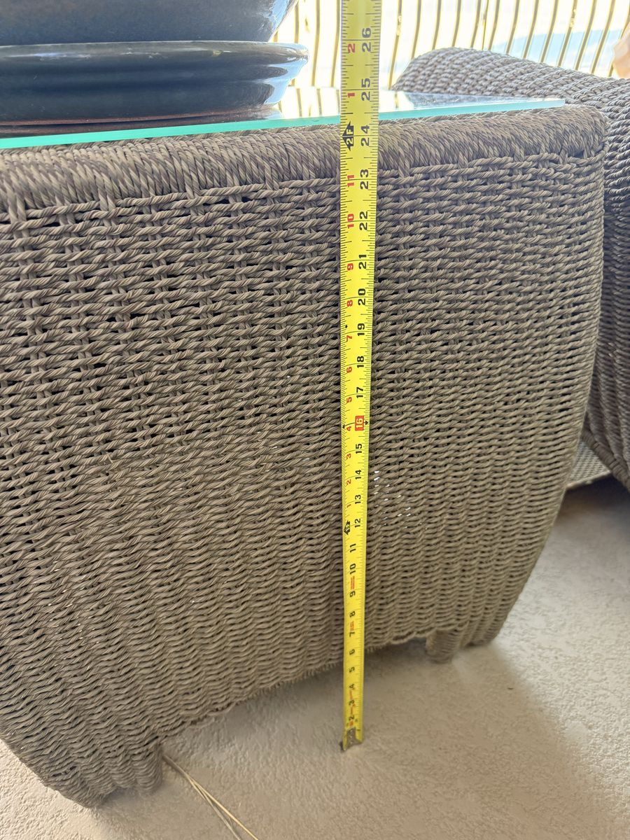Details: • Durable woven wicker design with a timeless, neutral look • Thick, comfortable seat cushions • Ottomans can double as extra seating or footrests • Glass-top tables add a clean, modern touch • Everything is coordinated and ready to use