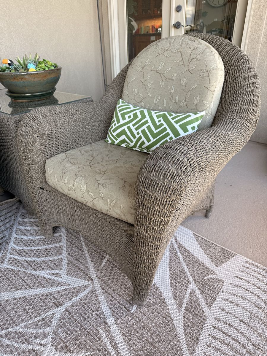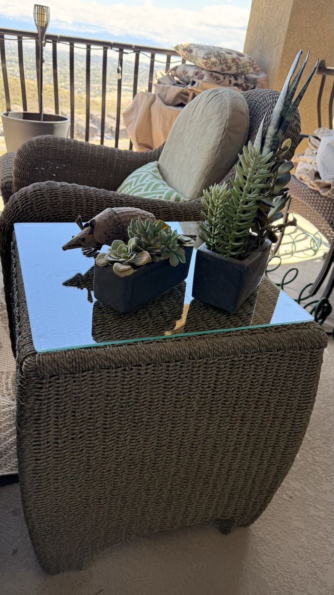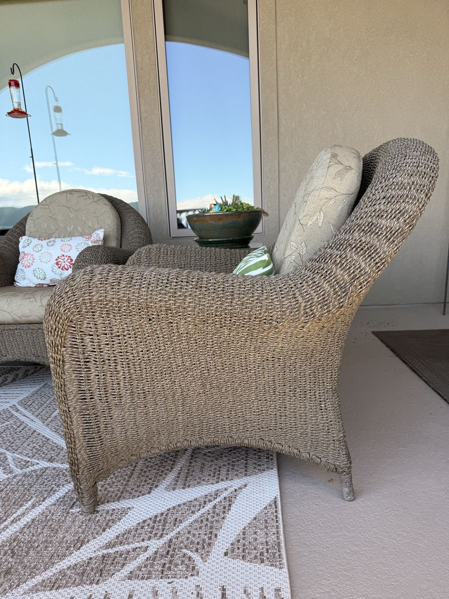 Turn your patio into a cozy, resort-style retreat with this full wicker furniture set. Perfect for relaxing mornings, sunset drinks, or hosting friends.