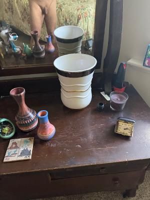 Kachina doll (Hopi/Zuni tradition; Southwestern “fetish” carving style bear; Two Native-style vases; Four Corners object
