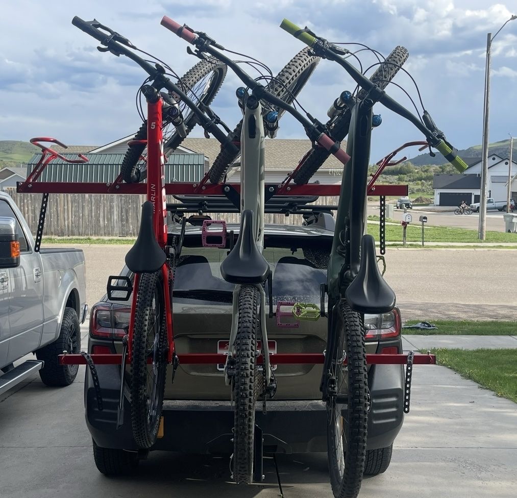 I am selling our bike rack. It’s the awesome Velocirax 5x. It has more spacing than the normal 5 bike carrier. These are built solid and carry heavy bikes. It’s 2” hitch adapter.