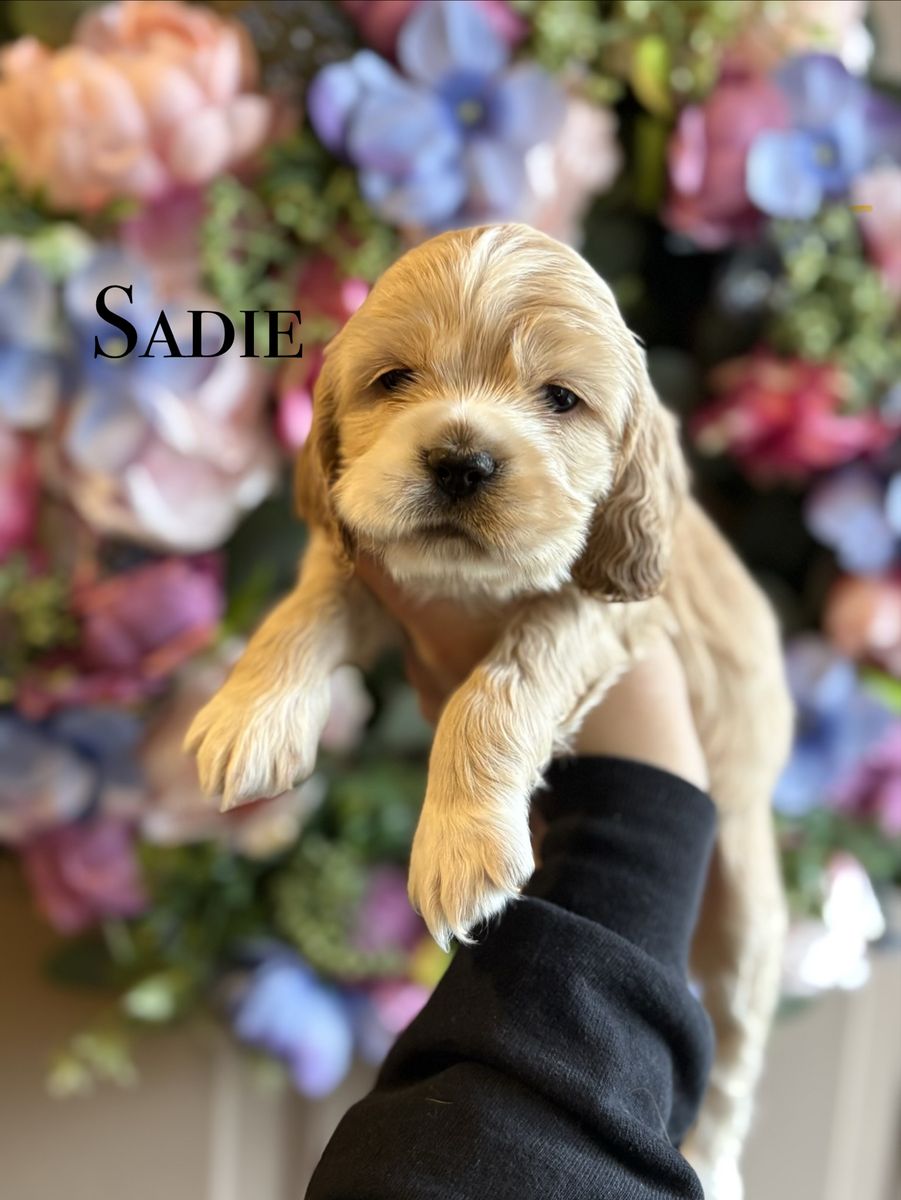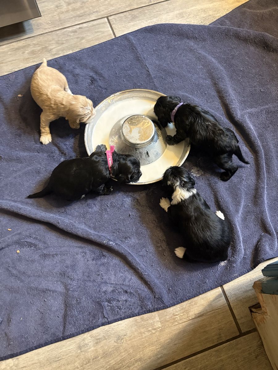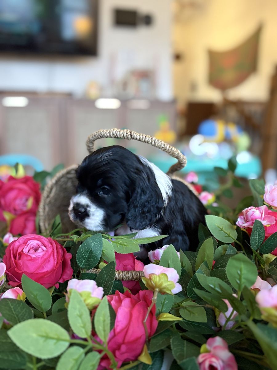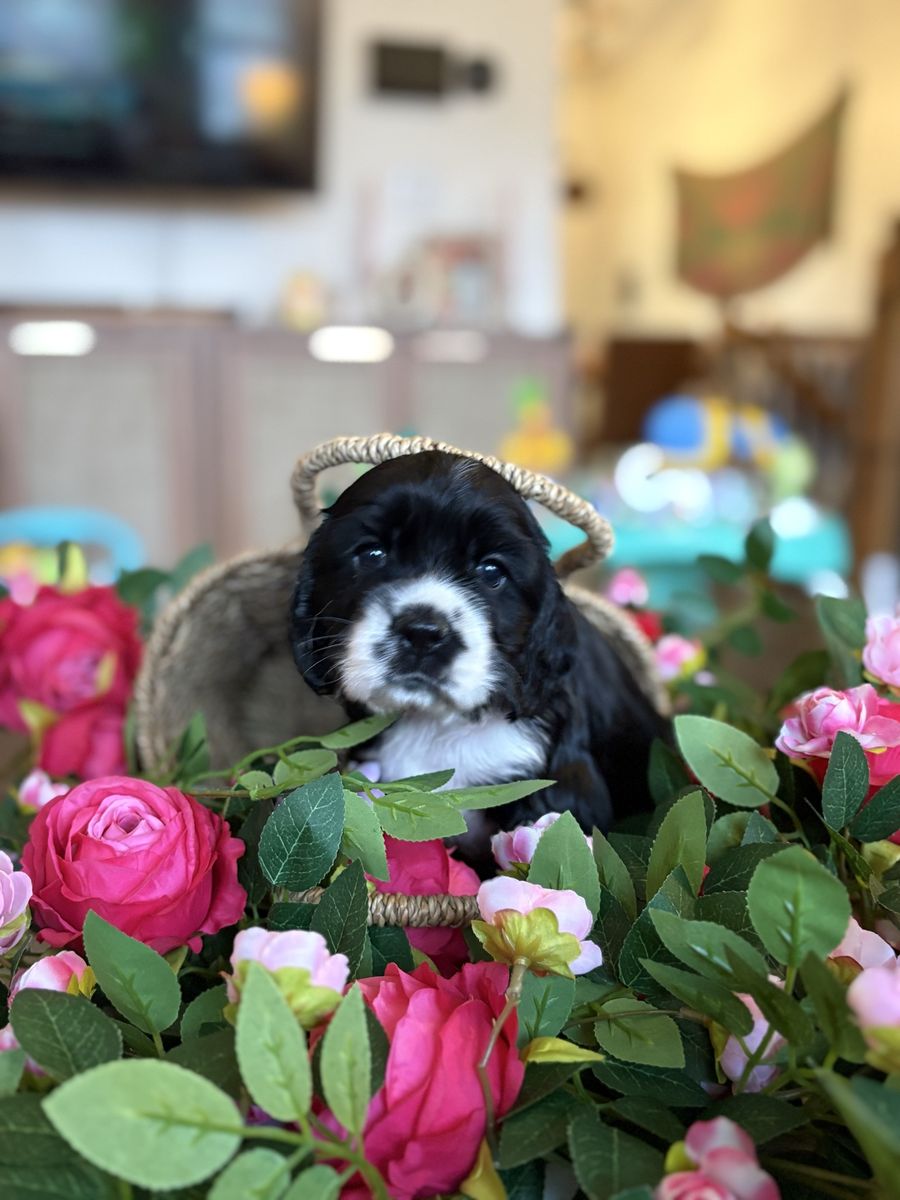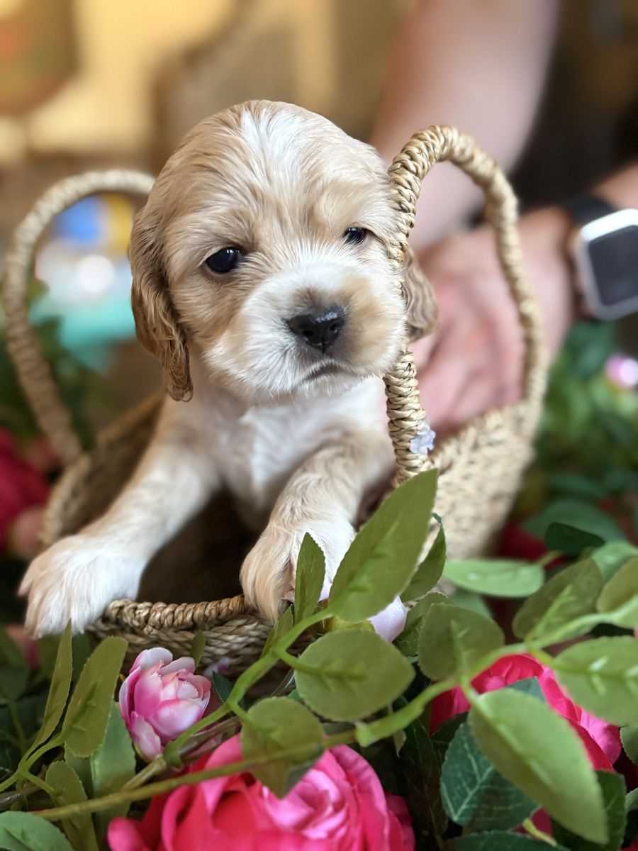 ZelleWe have 4 American Cocker Spaniel puppies! They will be 6 weeks old on Mother’s Day weekend. 3 females, 1 male.