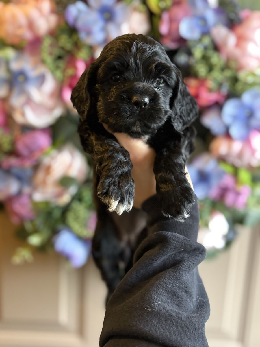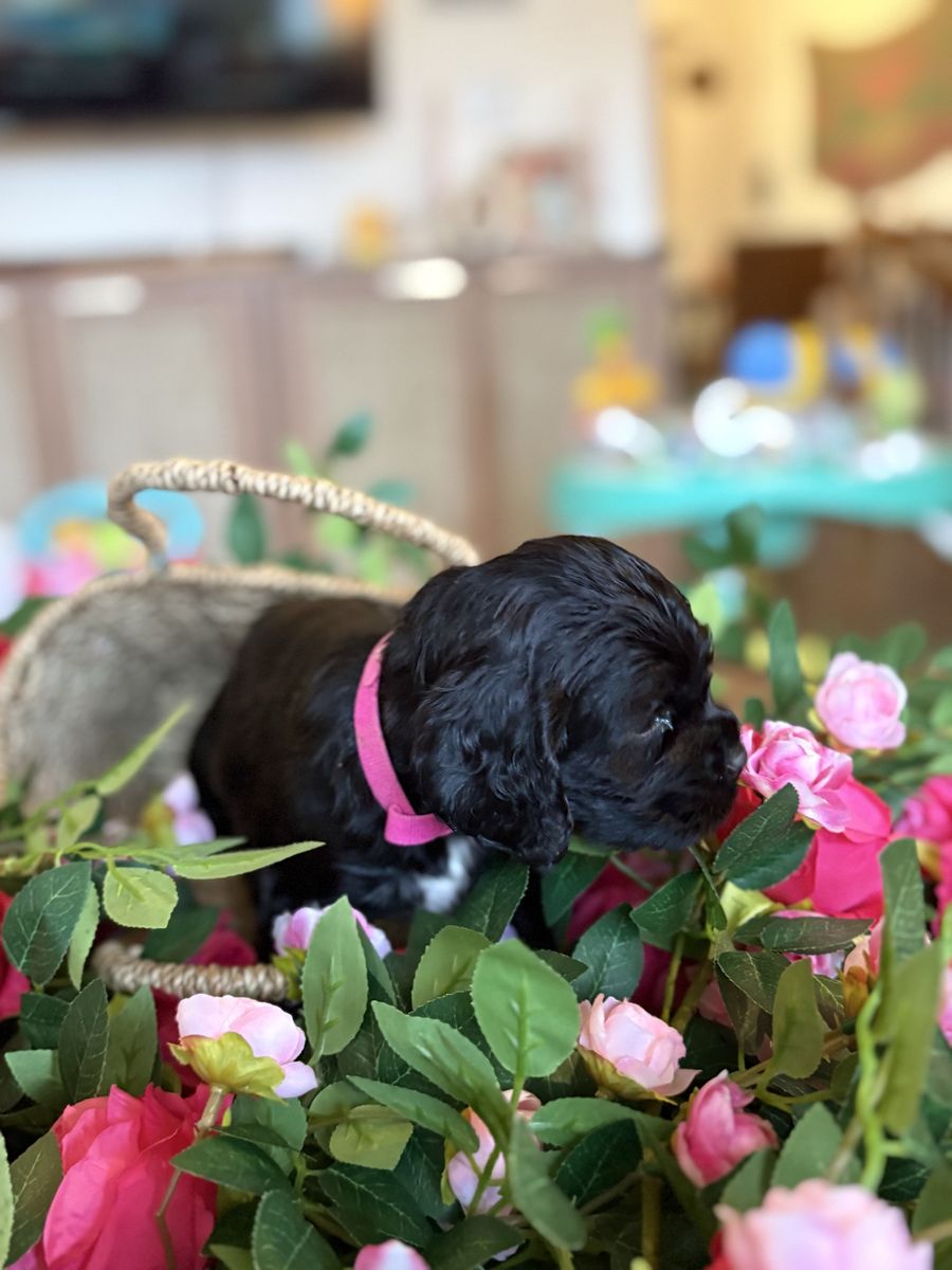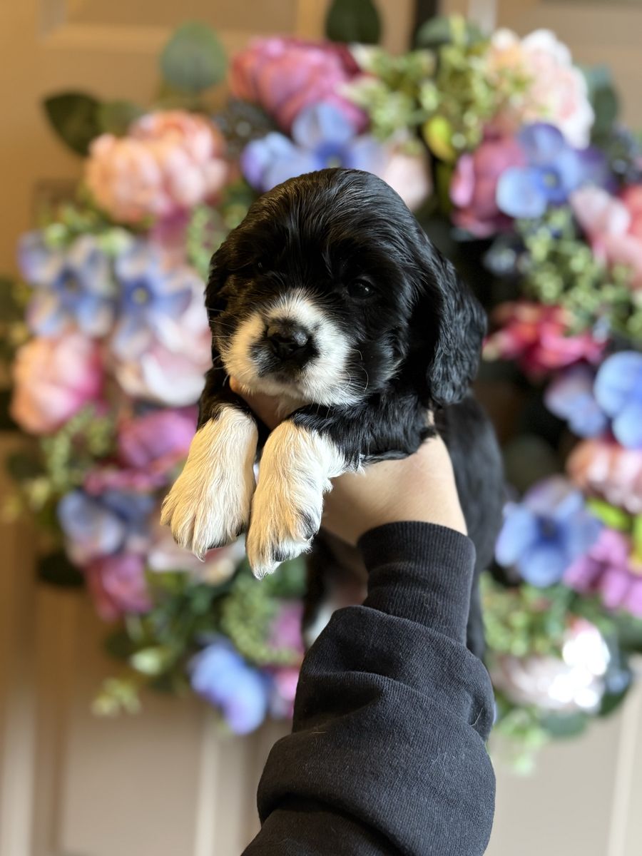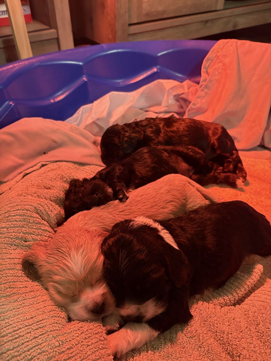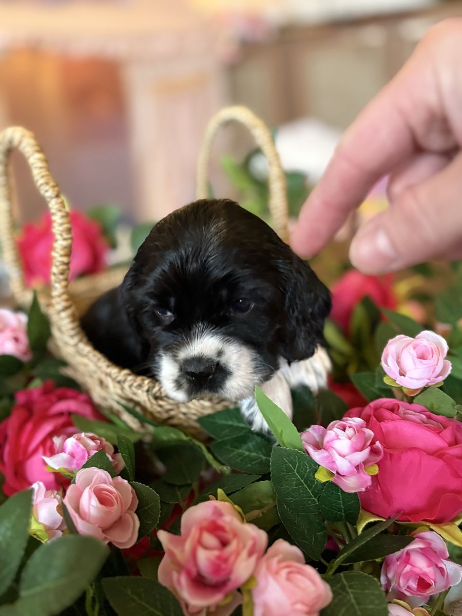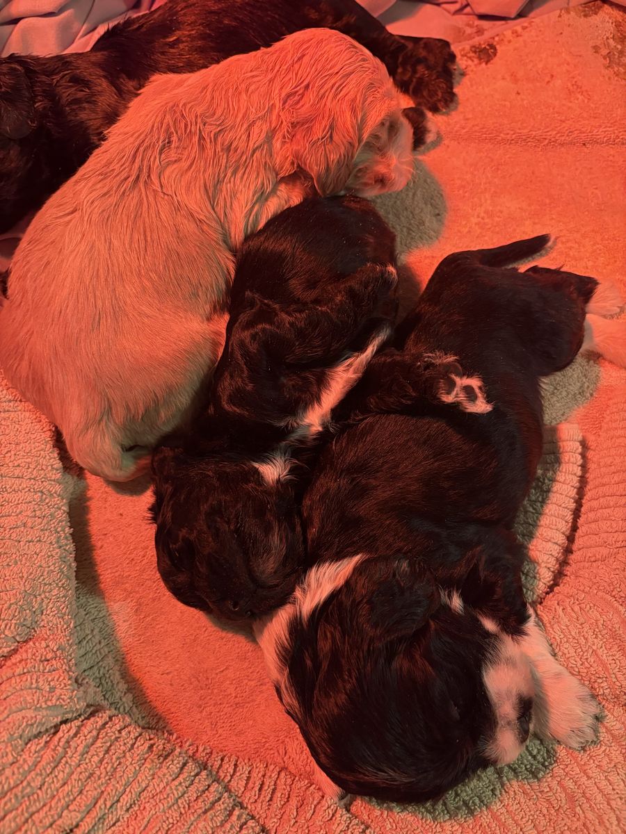 ZelleWe have 4 American Cocker Spaniel puppies! They will be 6 weeks old on Mother’s Day weekend. 3 females, 1 male.