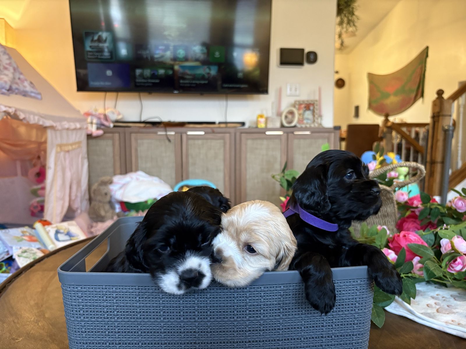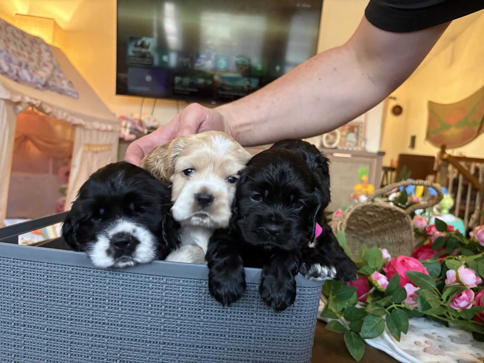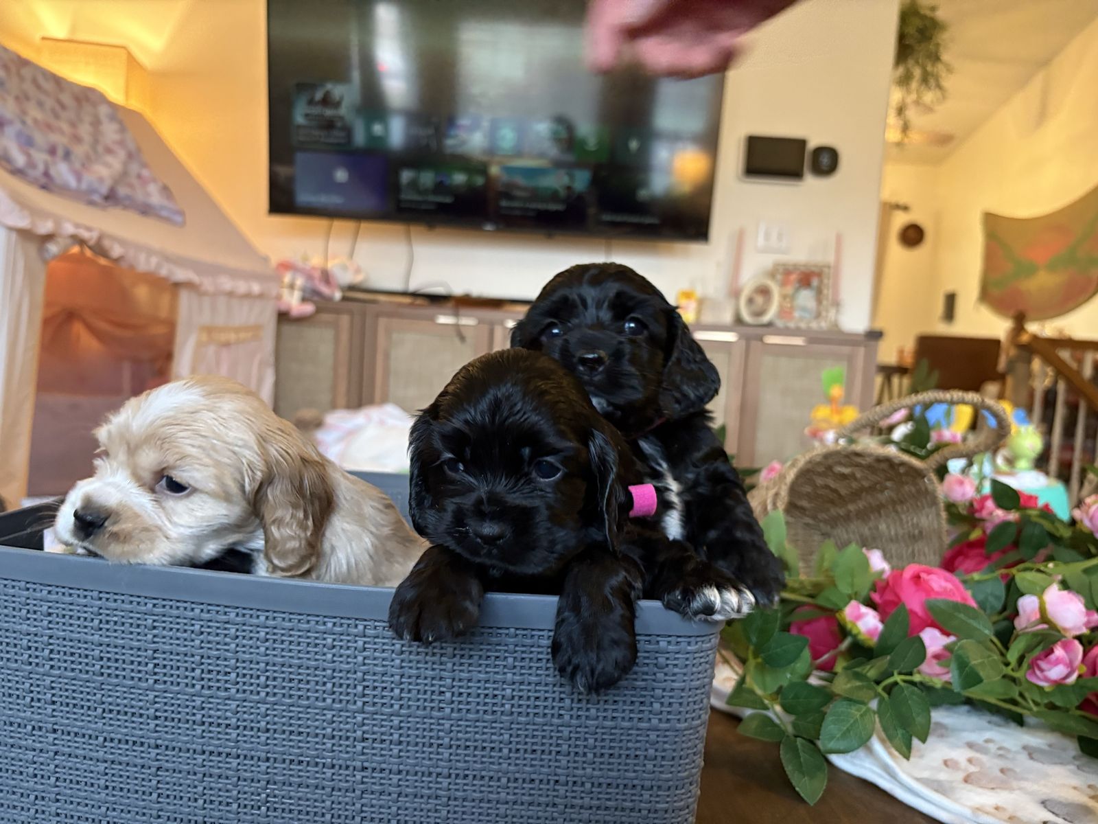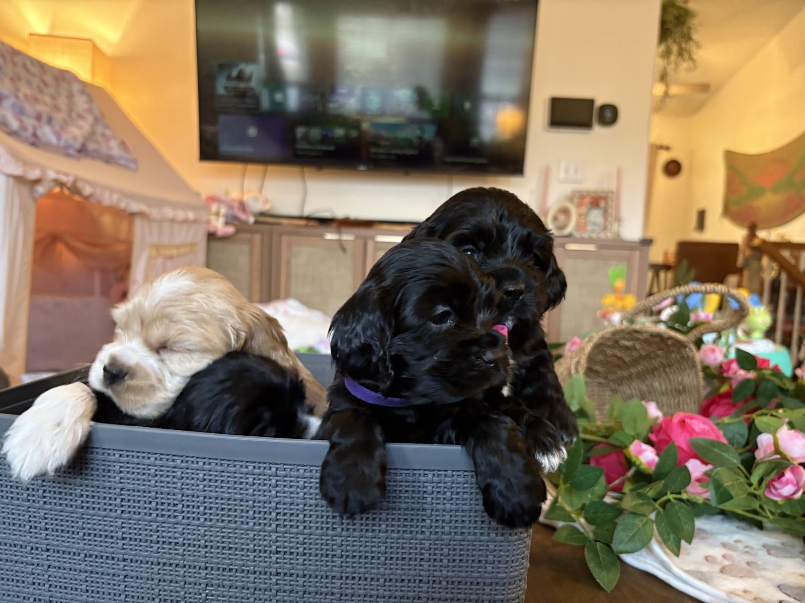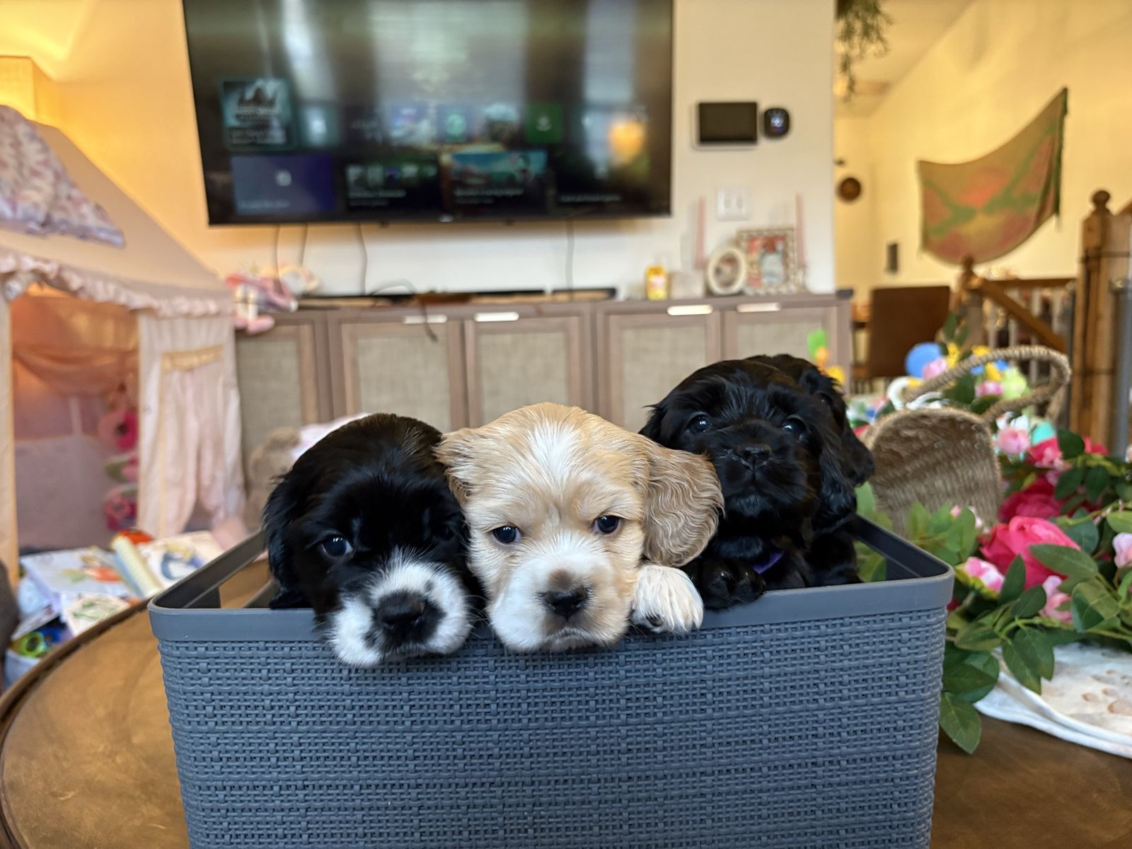 ZelleWe have 4 American Cocker Spaniel puppies! They will be 6 weeks old on Mother’s Day weekend. 3 females, 1 male.