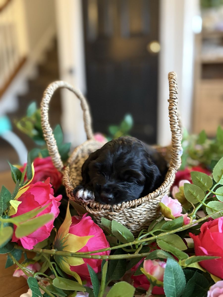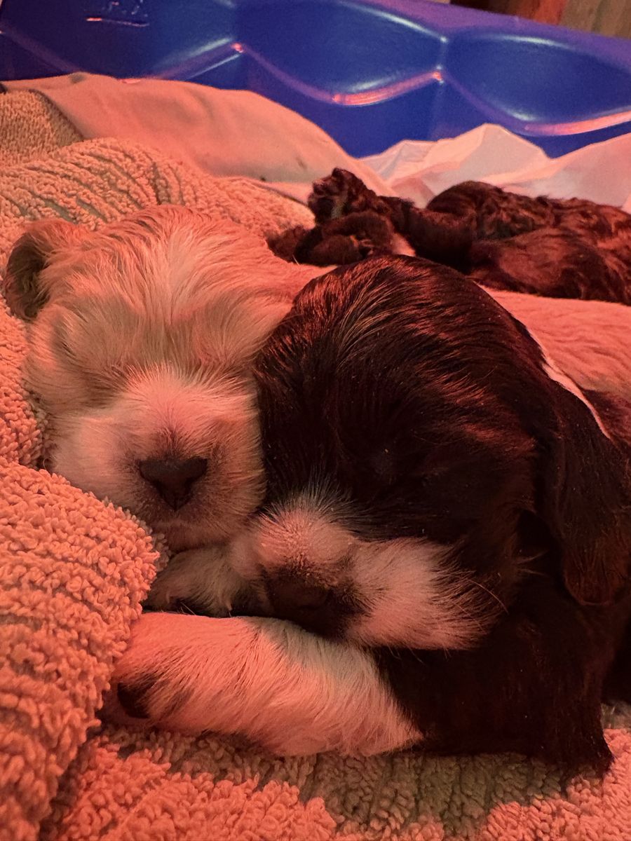 These puppies are amazing! Born and raised in the center of our home. They’re handled and loved daily. Introduced to chickens, cats, kids, other dogs. They’ve been introduced to grooming, kennel training, and potty training as well. They will come with their first shots, deworming done, and a goodie bag to go home with! Born on March 29, will be 6 weeks old on May 10.