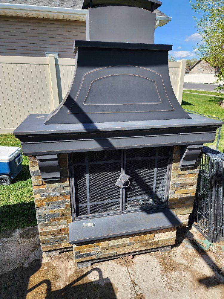 Venmooutdoor fire place some of the decorative stones fell off but we have most of them so they can be put back on. 500.00. obo