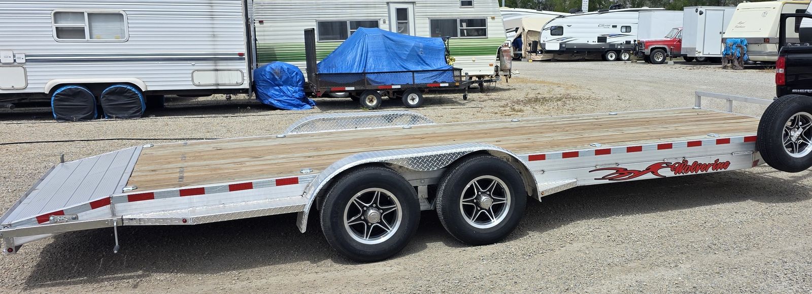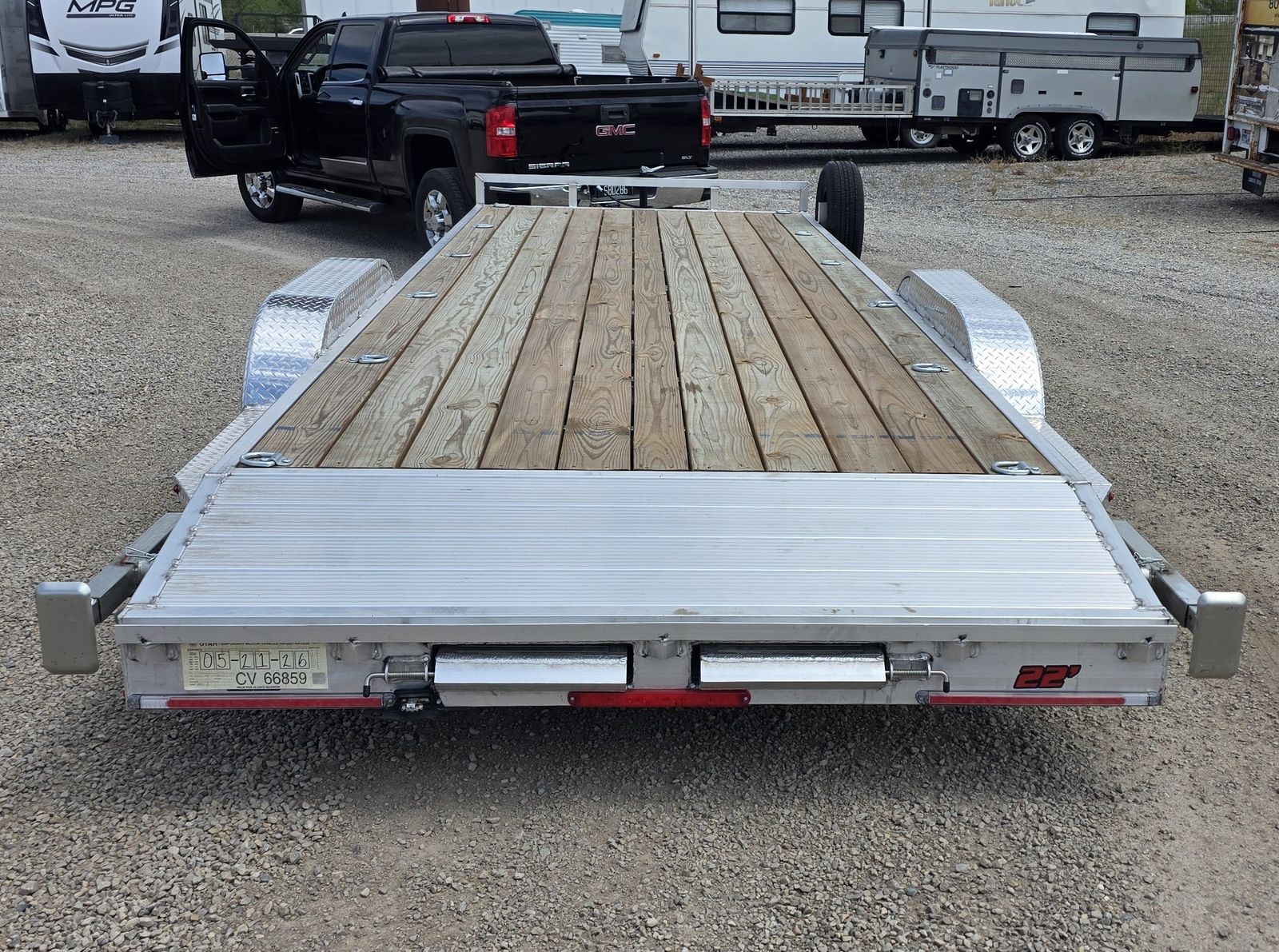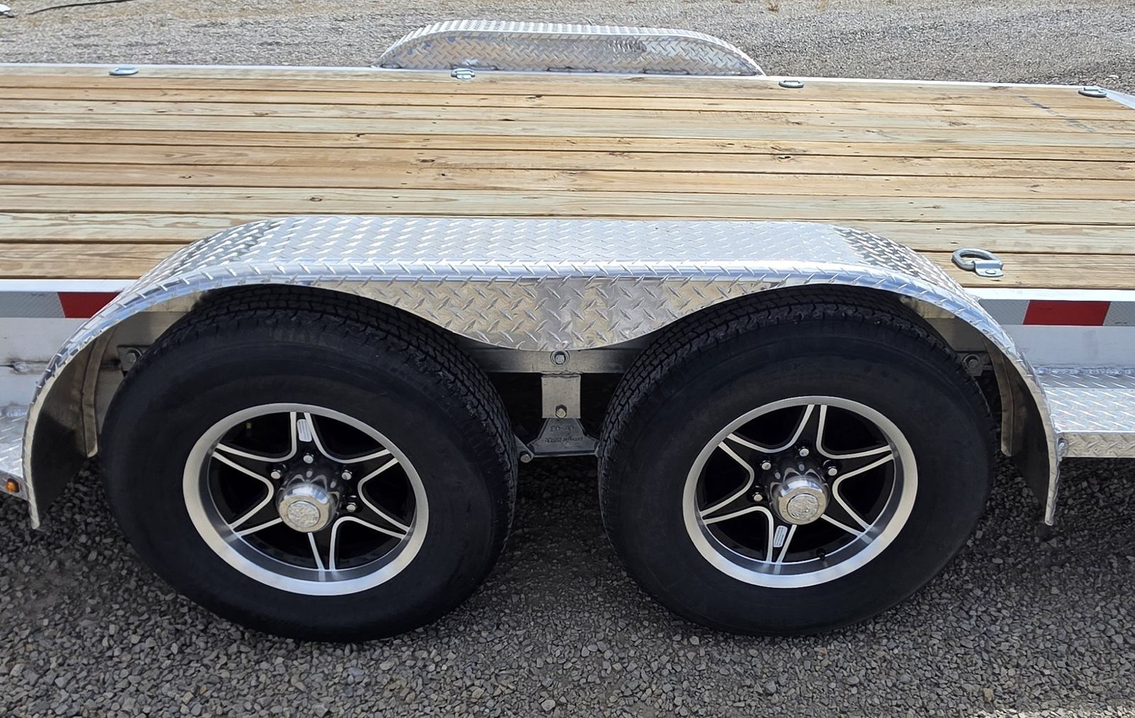 7x22 deck 10,000 lb GVWR Dual axle ST225/75R15 Load Range E (10-ply) tires Matching full-size spare with matching rim Aluminum wheels LED lights Dovetail rear Breakaway system 2-5/16” coupler
