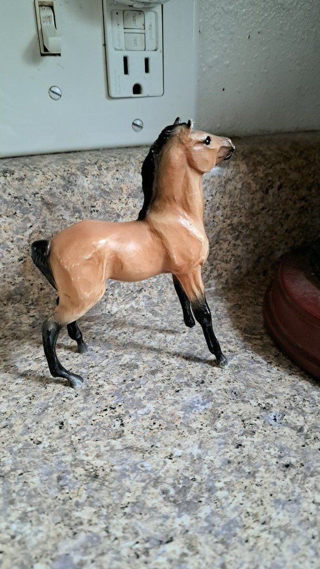 Classic sized buckskin mestano foal. $3, body and play model. broken leg and ear, scuffed up.