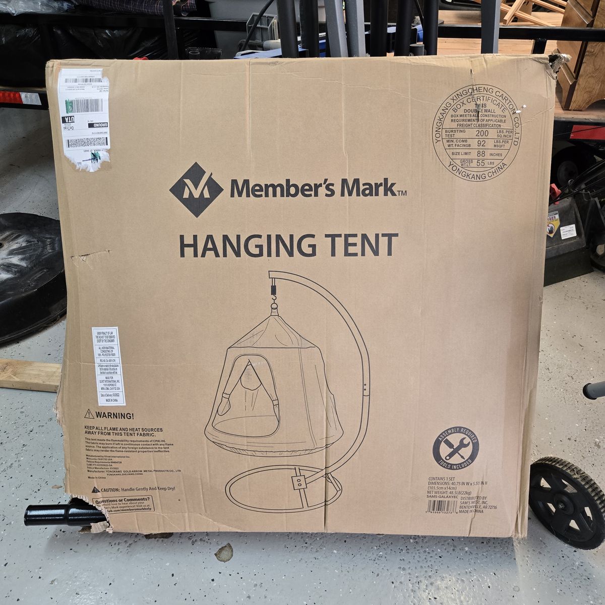 Member's Mark Hanging Tent, new in box. Galaxy model. Some damage on box corner.