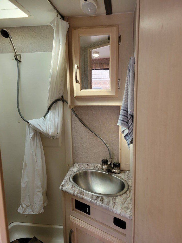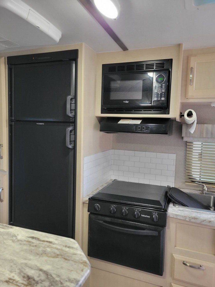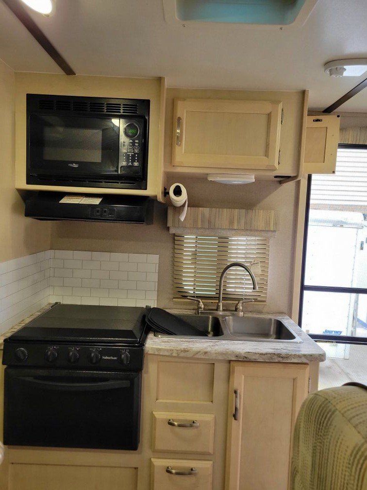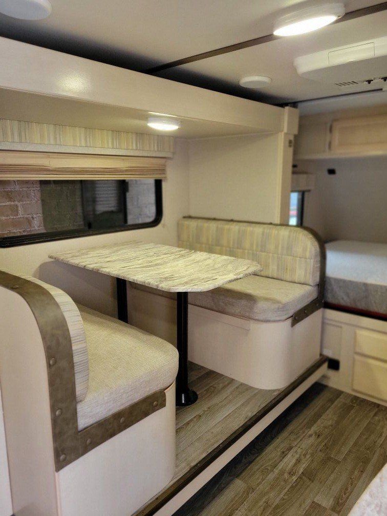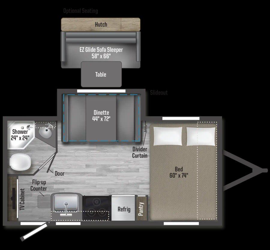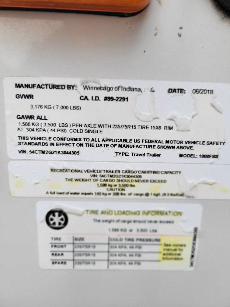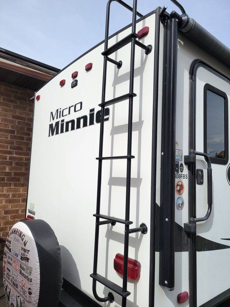 This 2018 Winnebago Micro Minnie 1808FBS is a 20' travel trailer with a front queen bed, dinette slideout, open galley, and large rear bathroom. Dimensions: 20' long, 84" wide, 116" high, with 76" interior height Weight: approx. 3,010 lbs dry weight, approx. 5,500 lbs GVWR Tanks: approx. 31 gal fresh water, 25 gal gray water, 25 gal black water, microwave, dinette table, 8 cu ft gas/electric refrigerator, dry bath with shower, versatile sleeps up to 4. My husband and I have loved this trailer! it is perfect for a couple or small family. But it is just me now, and I need to downsize. Everything works! 1808FBS Floorplan - Winnebago Micro Minnie | Travel Trailer Micro Minnie 1808FBS Floorplan.