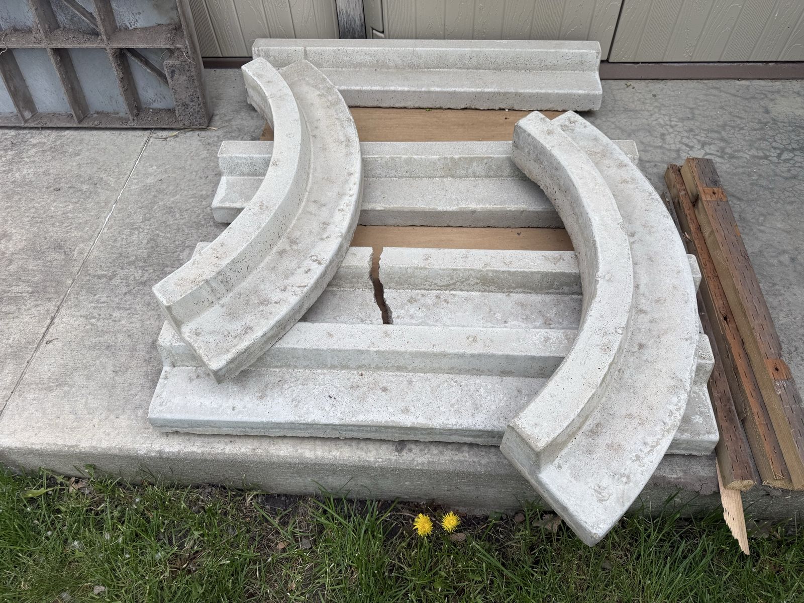 ZelleCast concrete. 36 inches per section. 18 straight and two 90 degree curved. Take a look and make an offer.