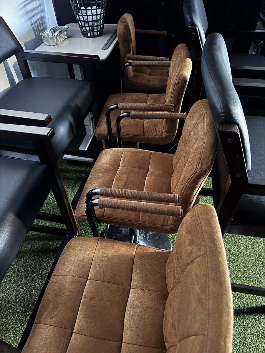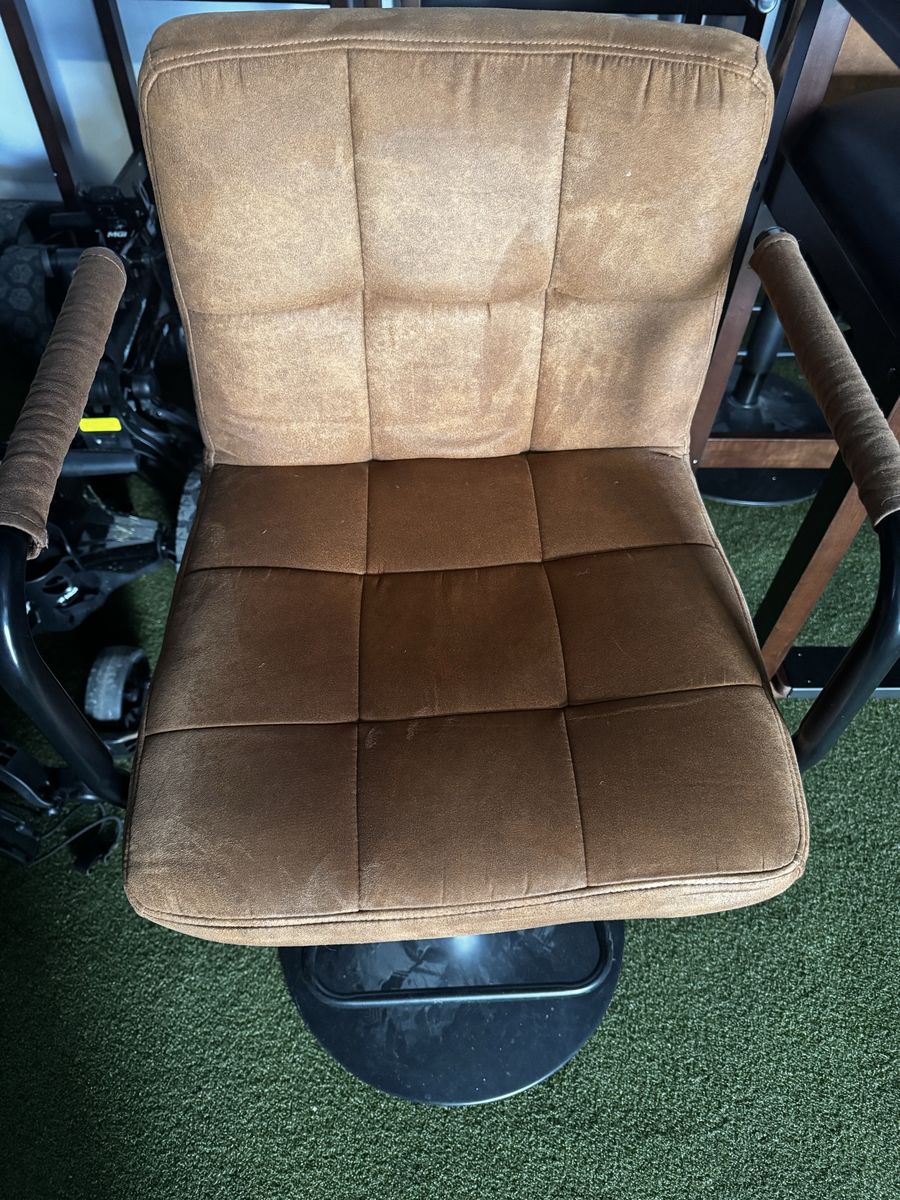 Tan microfiber fabric counter high bar stools. Adjustable to fit needed height. In great condition. Used in a golf simulator room. All four sold together, willing to take offers