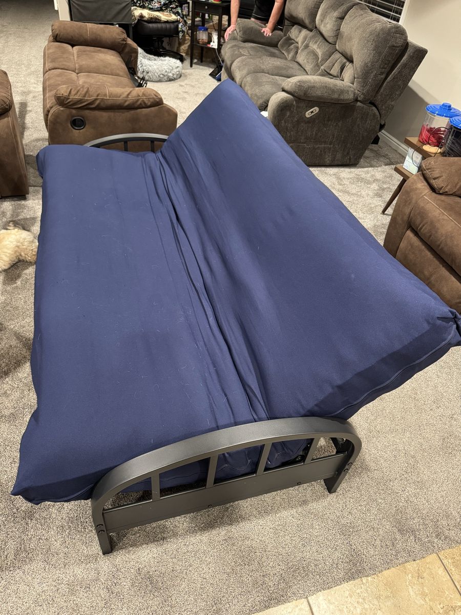 VenmoFull size futon with 8” thick mattress, very comfortable. Always had a cover on the mattress. Comes with a set of sheets that’s been washed but never used.