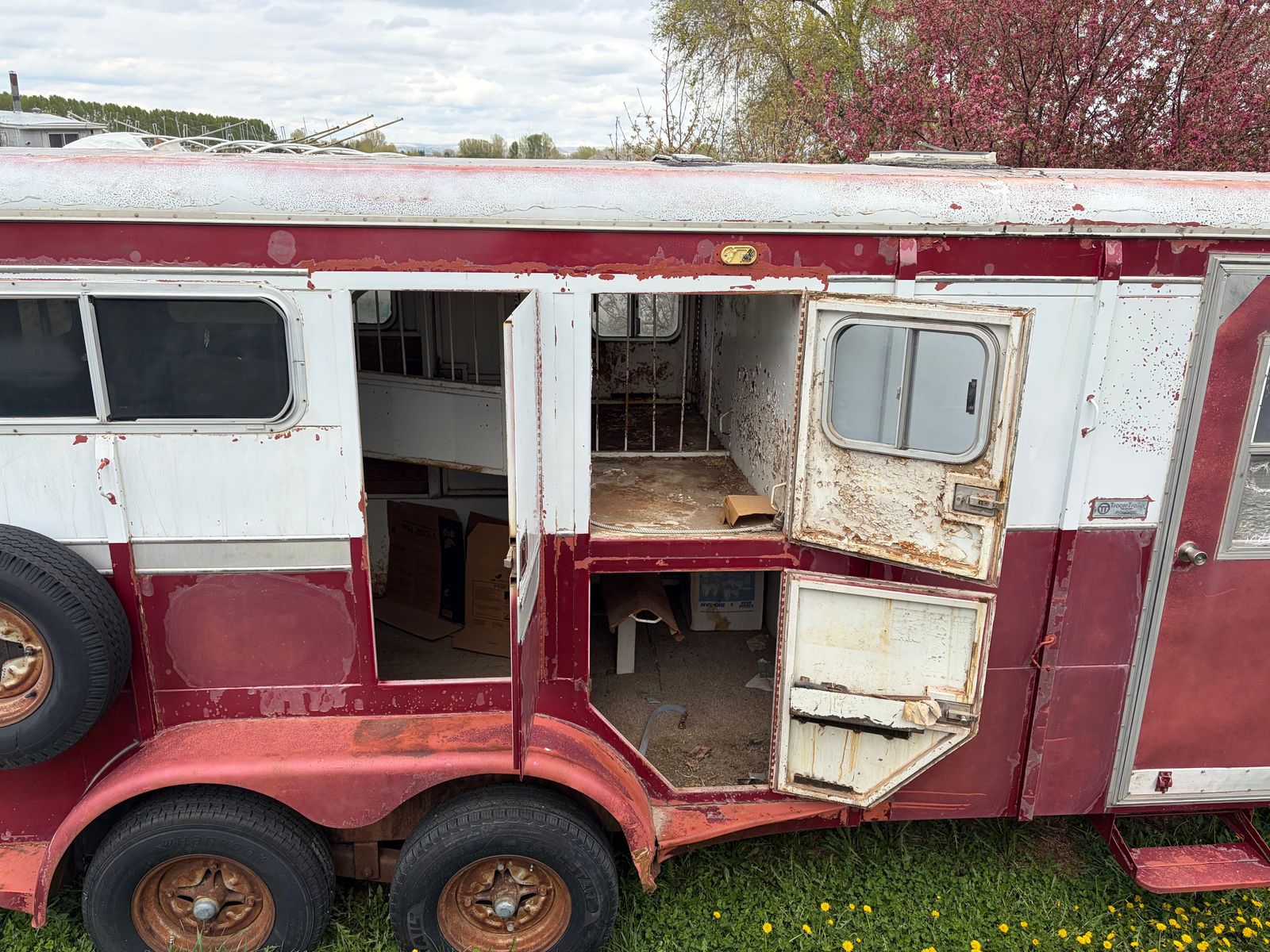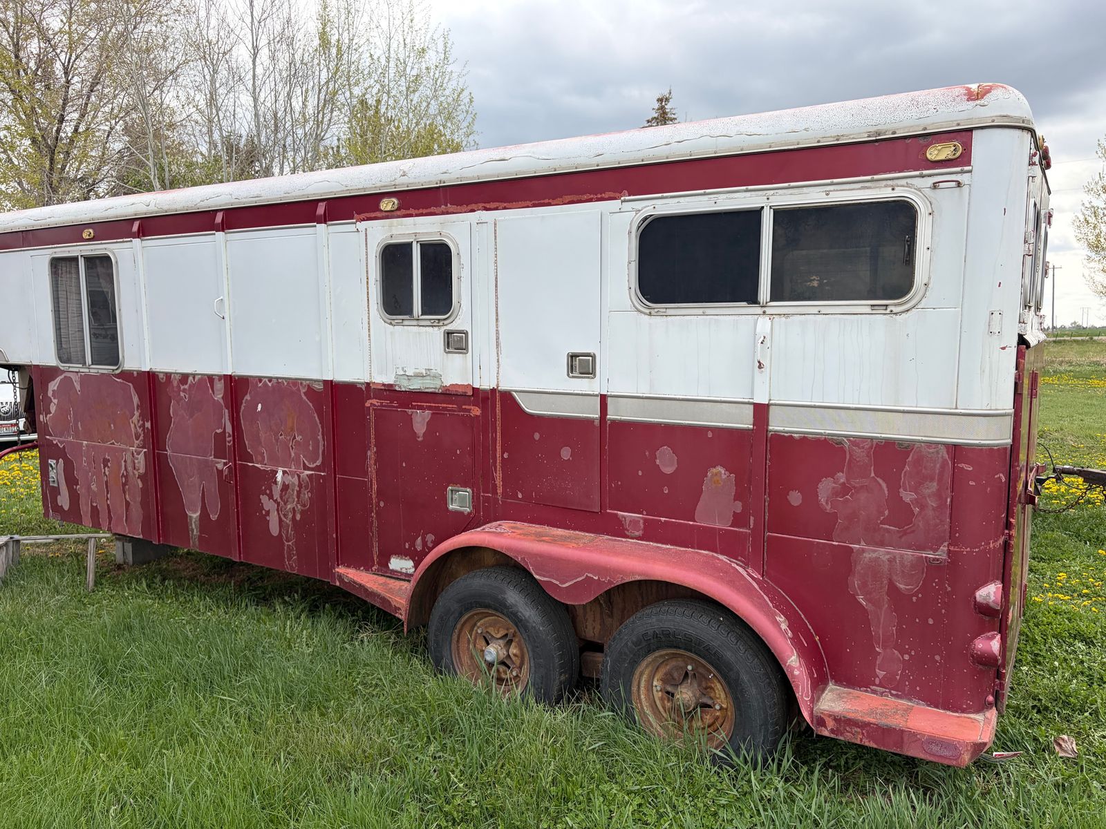 Venmo29' 2 place horse trailer 5th wheel with sleeper, tac storage accessable from both sides. Floor is solid. $3000 OBO. Has stove, fridge (not sure if it works), sleeps 3, closet space.
