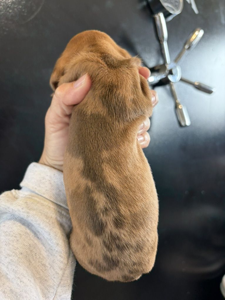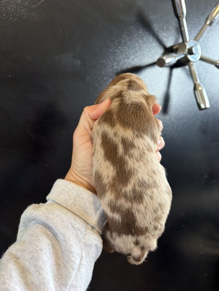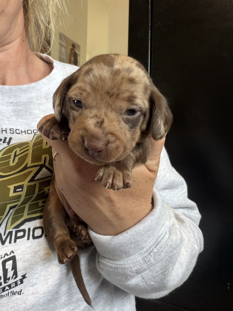 ZelleMales and females Will come ready with first shots Dewormed Well socialized with children, adults and other dogs Chocolate dapple female $2500