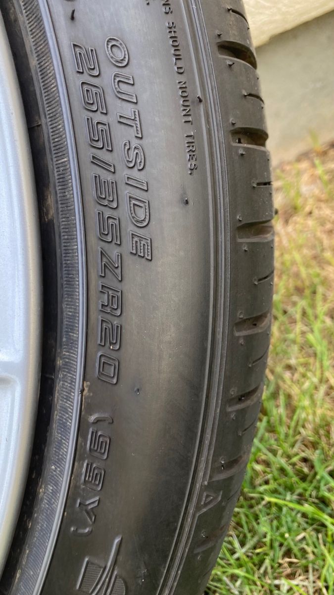 Rear tire size: 285/35ZR20 Front tire size: 235/35ZR20