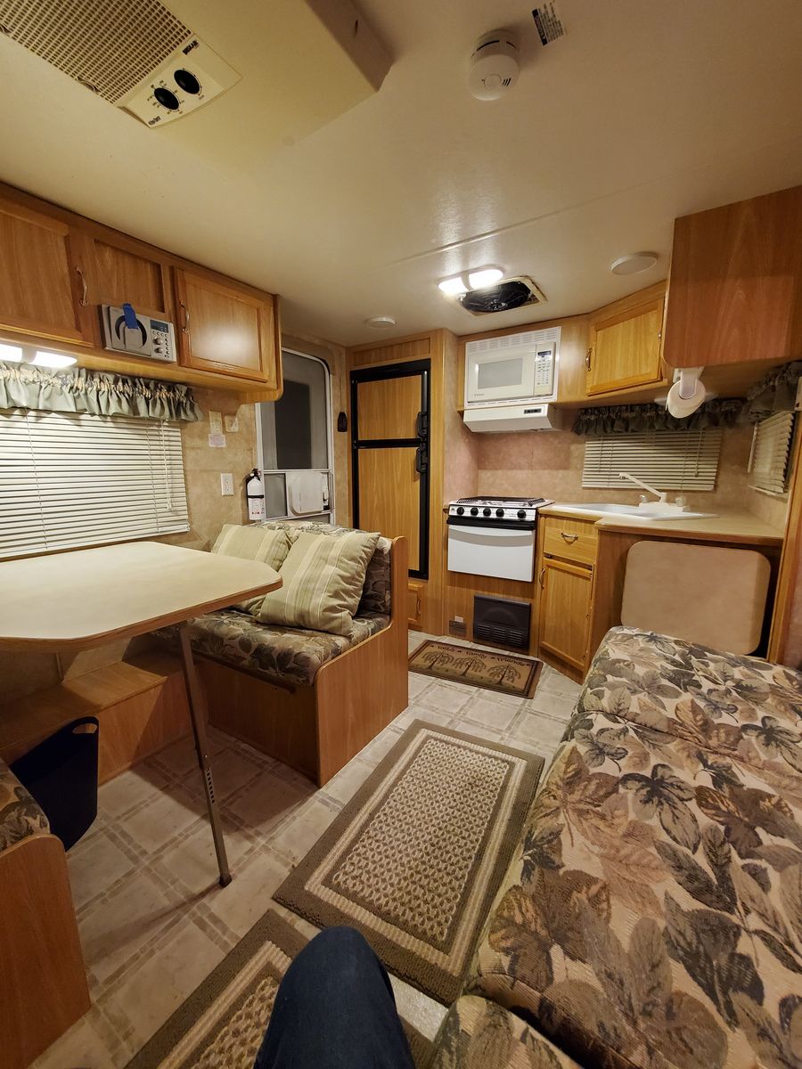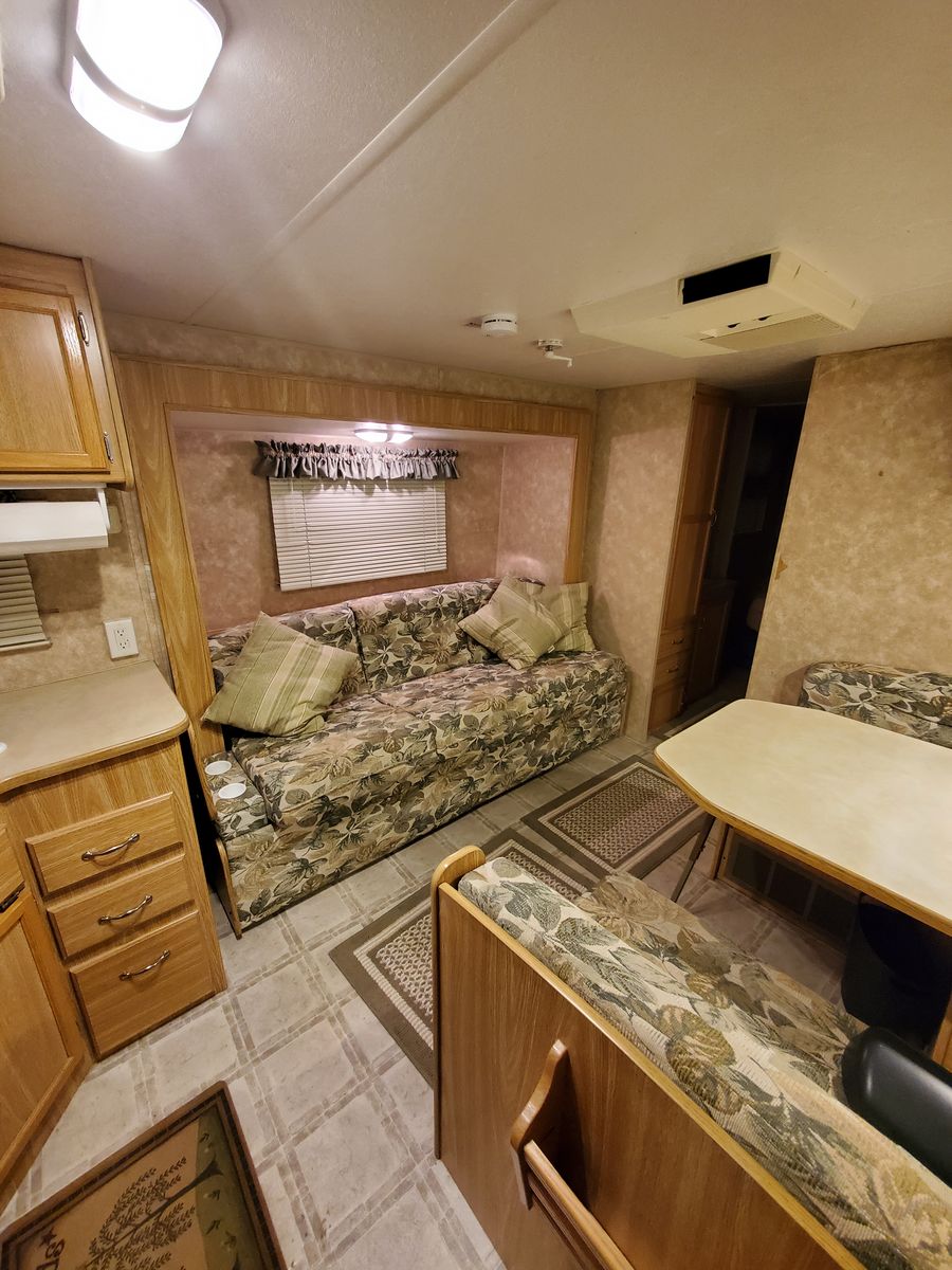 Ready for summer adventures? This very good condition 26' Nomad 250LT has it all: slide-out for extra living space, roof-mounted solar panel + battery storage for easy dry camping, full AC power hookup for RV parks, and sleeps 5-6 comfortably with a private rear bedroom featuring a full-size memory foam bed (always made up!), plus a sleeping place in the dining table area and fold-flat sofa for flexible setups. All very clean and ready to go.