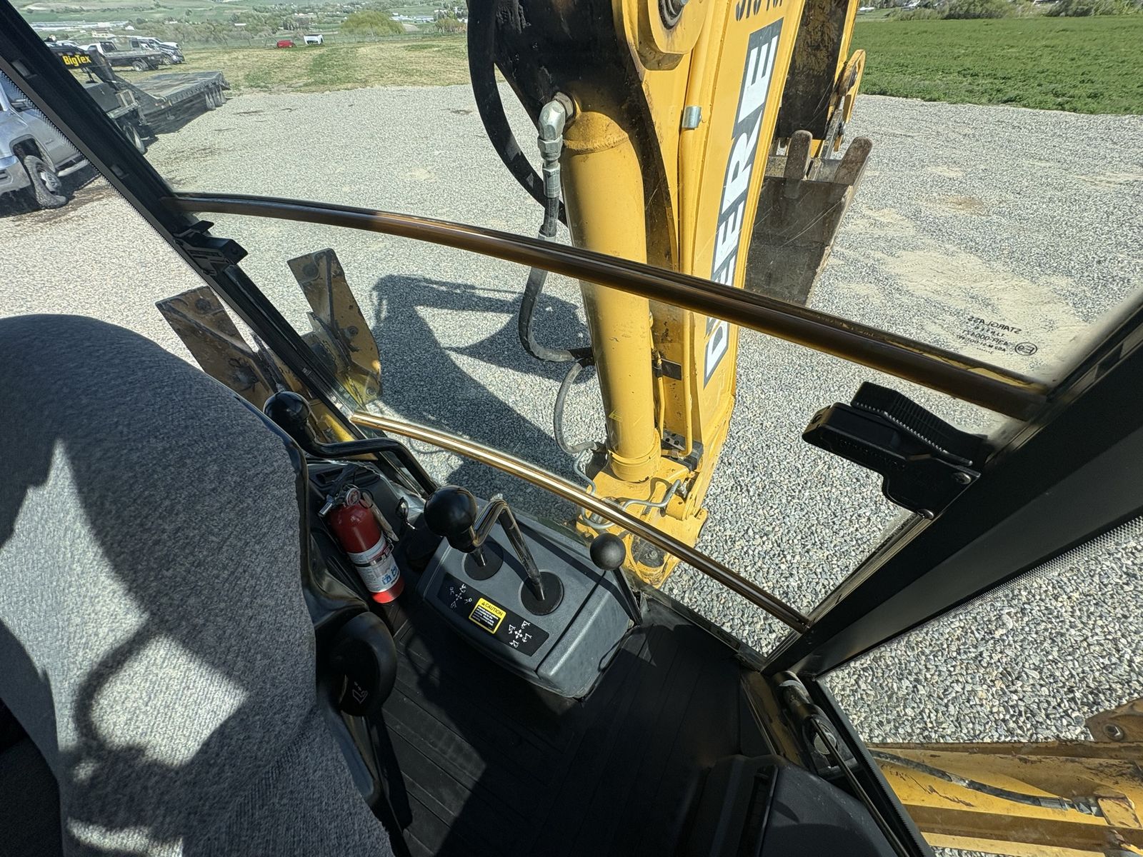This has auxiliary hydraulics plumbed to the back of the hoe, so you can run a hydraulic thumb or other attachments. We can install a hydraulic thumb for an extra cost. It also has a quick attach on the hoe for different buckets.