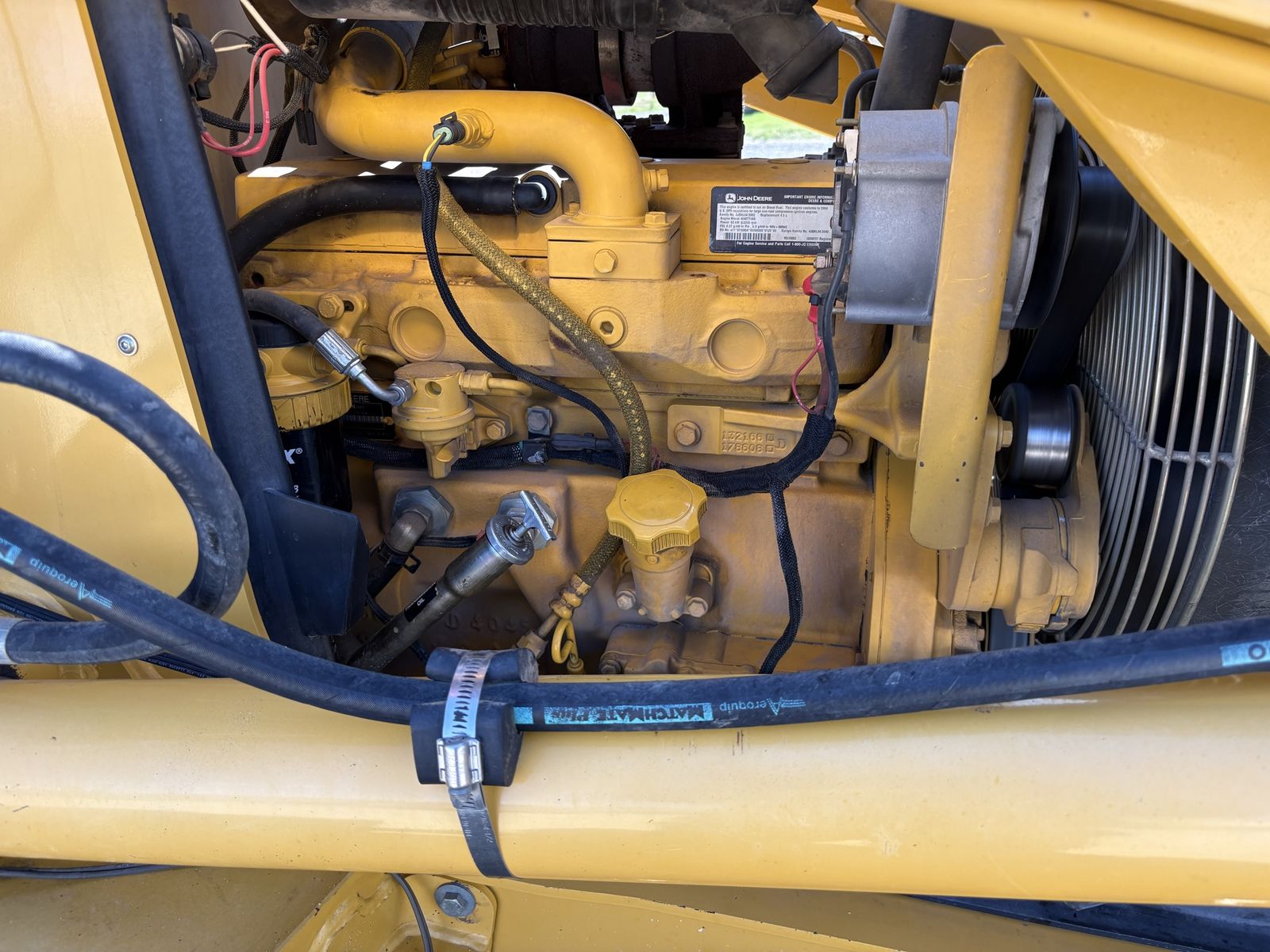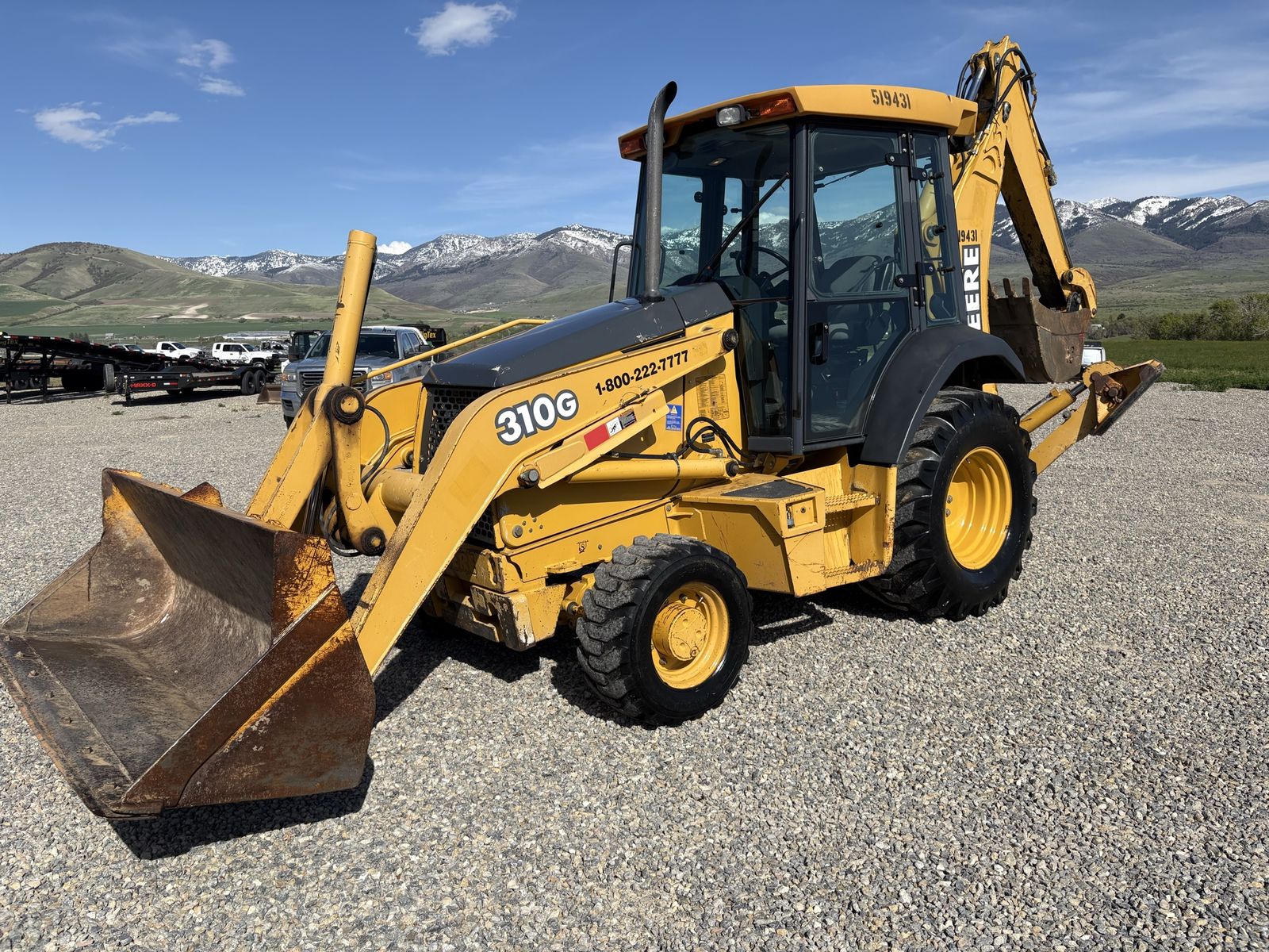Extremely clean, good condition pre-emissions John Deere turbo diesel 4x4 Backhoe. Closed cab with heat and AC